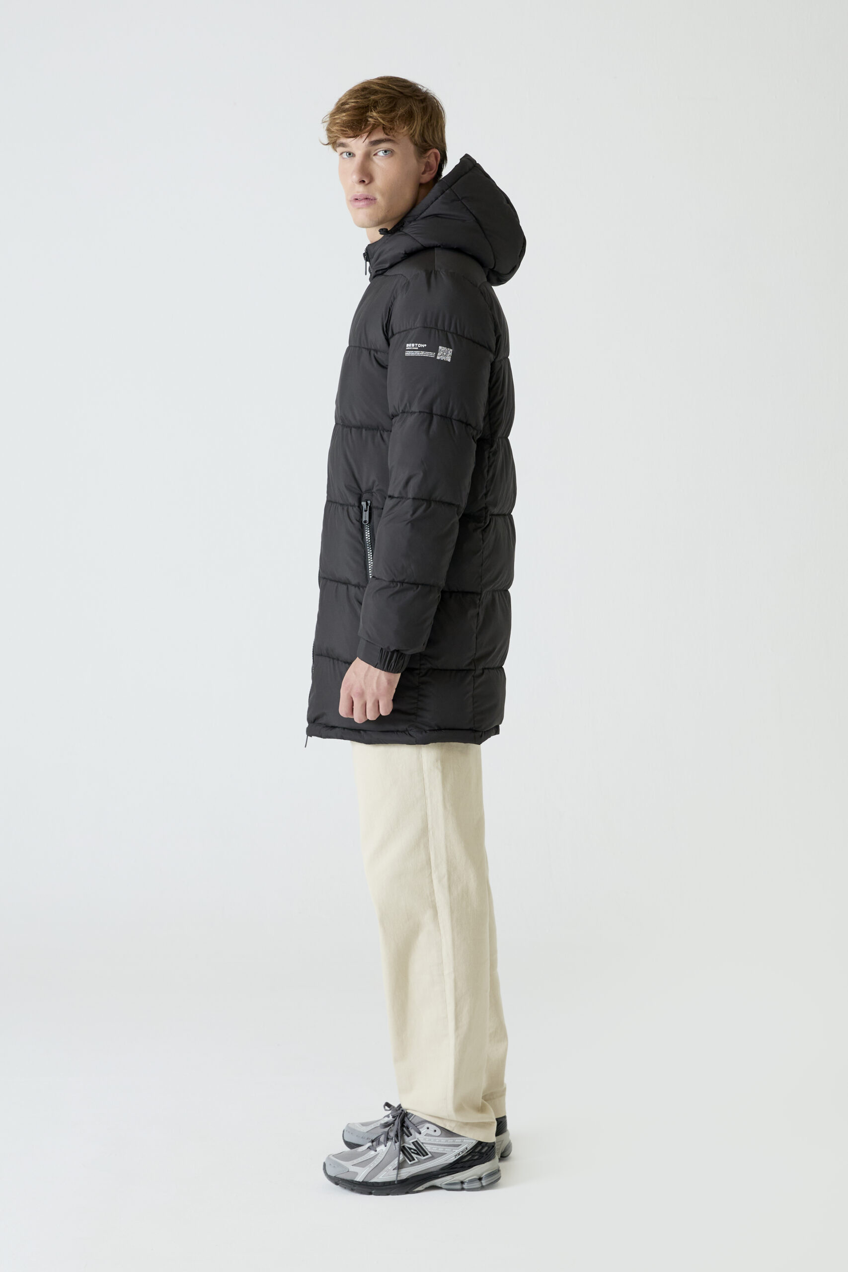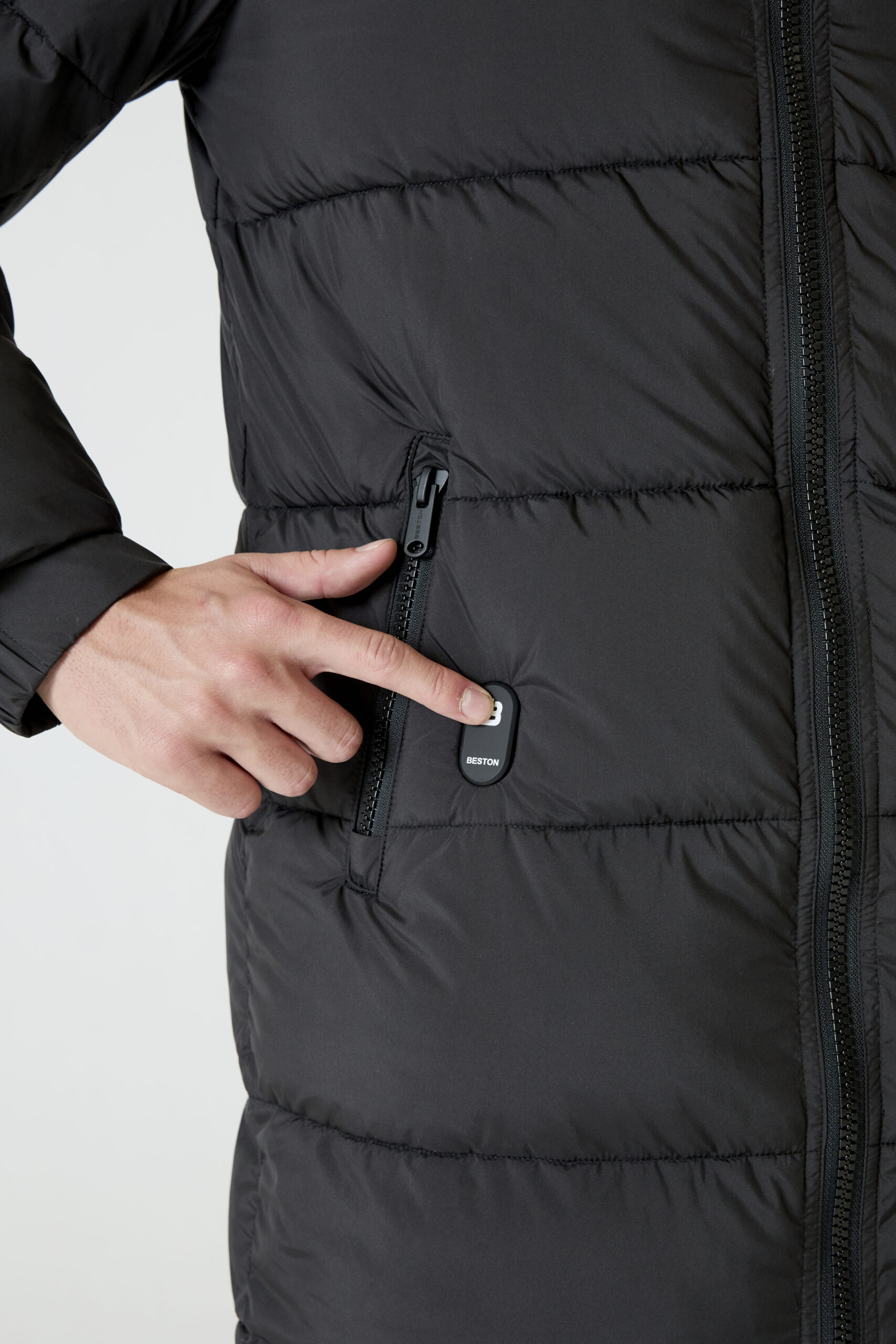 Heat-In Technology 2.0 coat: 9 adjustable temperature options, 5 optimized heating zones, with mobile charging functionality and up to 6 and a half hours of duration (battery included in delivery). Integrated personalized QR: Includes your professional, social and emergency profile. Made with certified recycled materials.