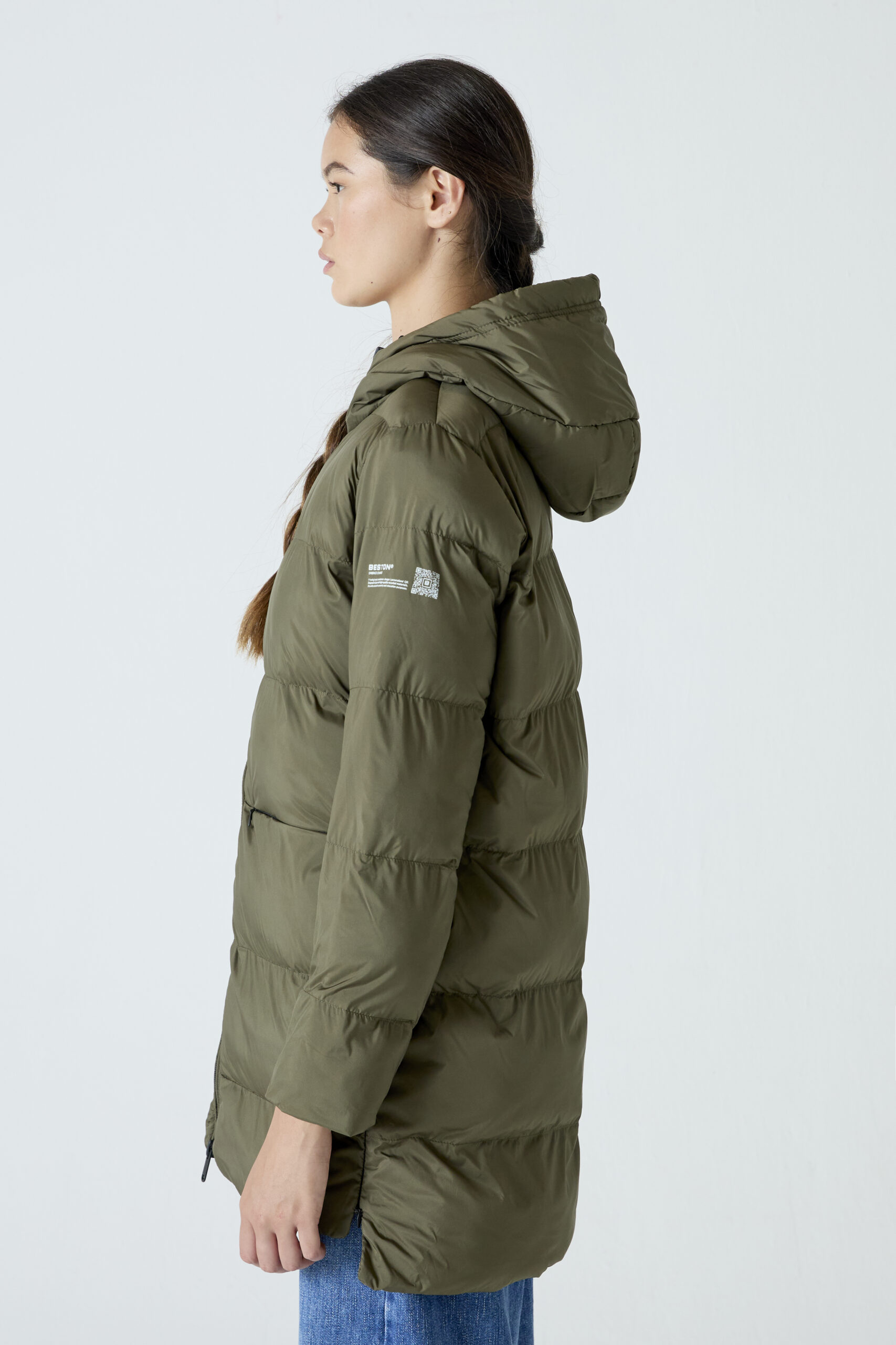 Heat-In Technology 2.0 coat: 9 adjustable temperature options, 5 optimized heating zones, with mobile charging functionality and up to 6 and a half hours of duration (battery included in delivery). Integrated personalized QR: Includes your professional, social and emergency profile. Made with certified recycled materials.