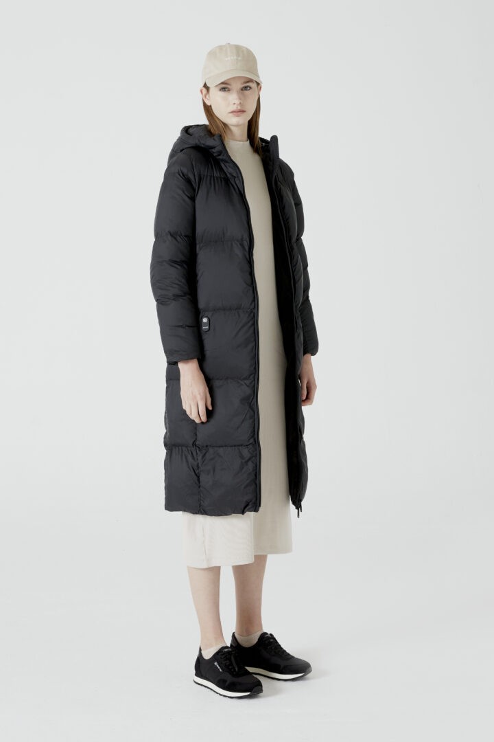 Heat-In Technology 2.0 coat: 9 adjustable temperature options, 5 optimized heating zones, with mobile charging functionality and up to 6 and a half hours of duration (battery included in delivery). Integrated personalized QR: Includes your professional, social and emergency profile. Made with certified recycled materials.