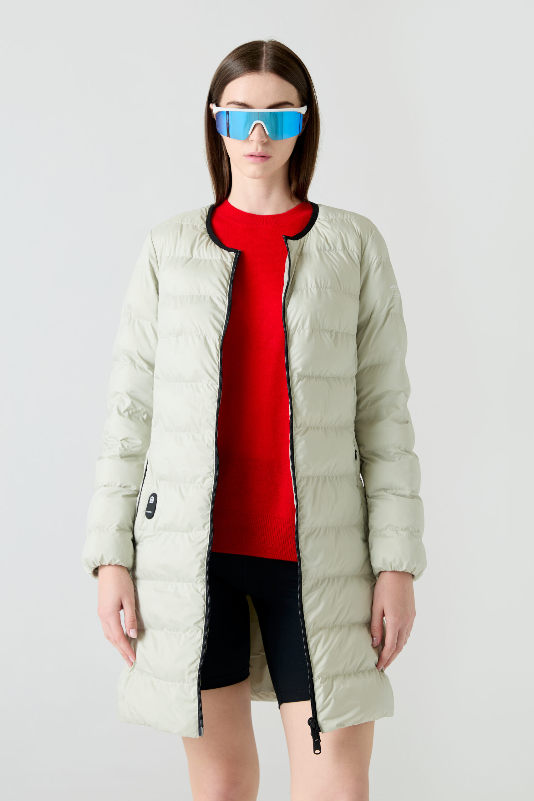 Heat-In Technology 2.0 coat: 9 adjustable temperature options, 5 optimized heating zones, with mobile charging functionality and up to 6 and a half hours of duration (battery included in delivery). Integrated personalized QR: Includes your professional, social and emergency profile. Made with certified recycled materials.