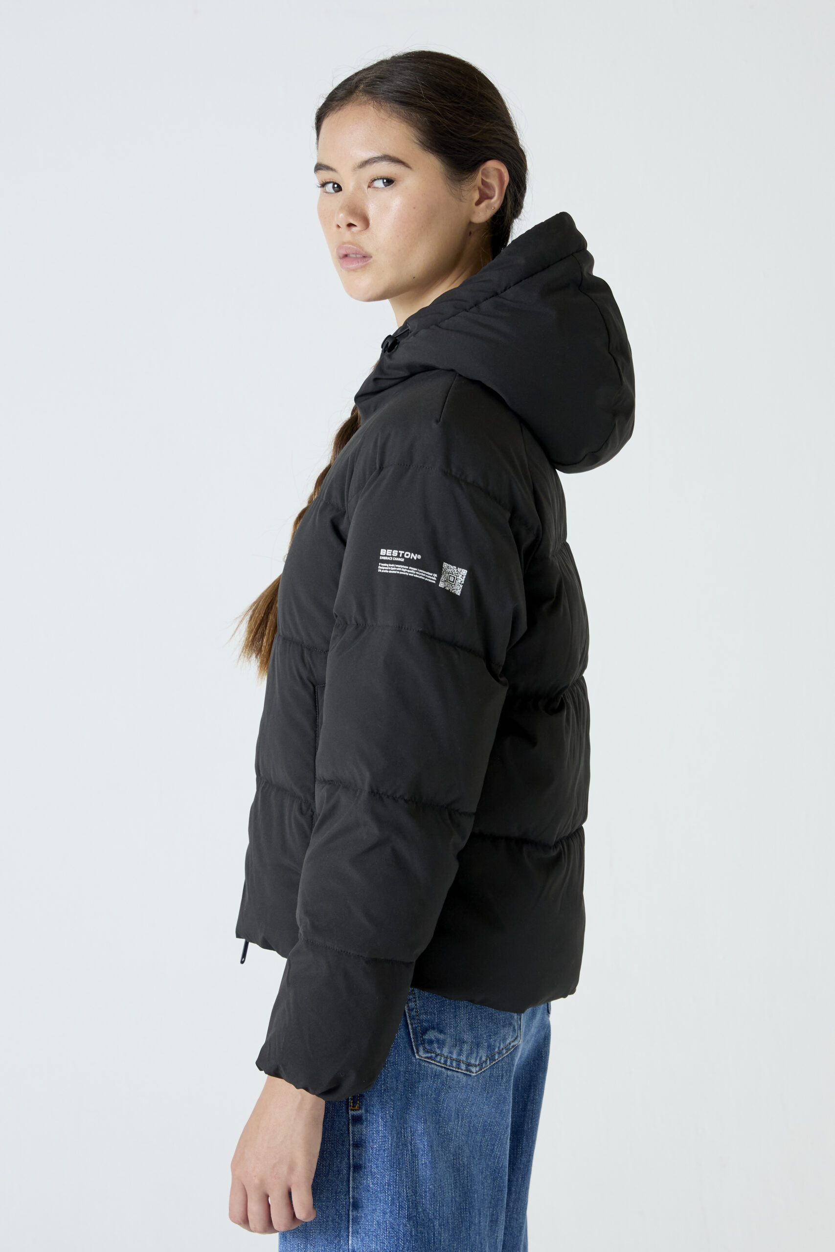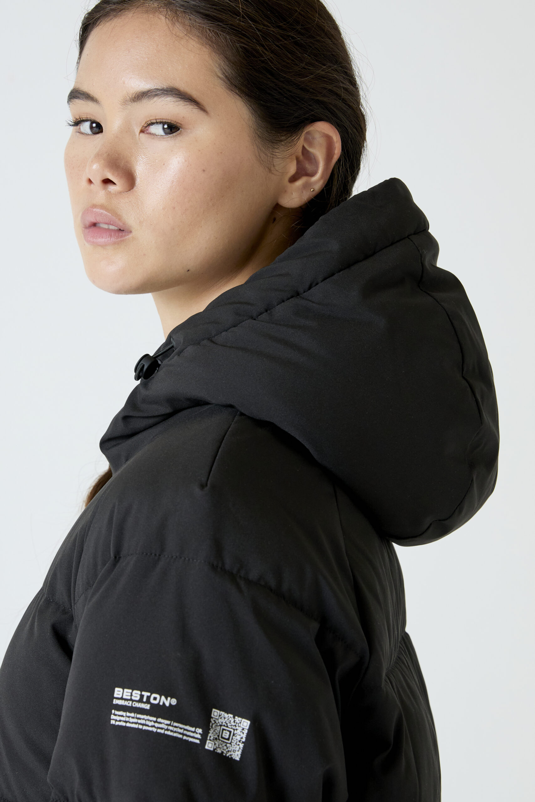 Heat-In Technology 2.0 coat: 9 adjustable temperature options, 5 optimized heating zones, with mobile charging functionality and up to 6 and a half hours of duration (battery included in delivery). Integrated personalized QR: Includes your professional, social and emergency profile. Made with certified recycled materials.