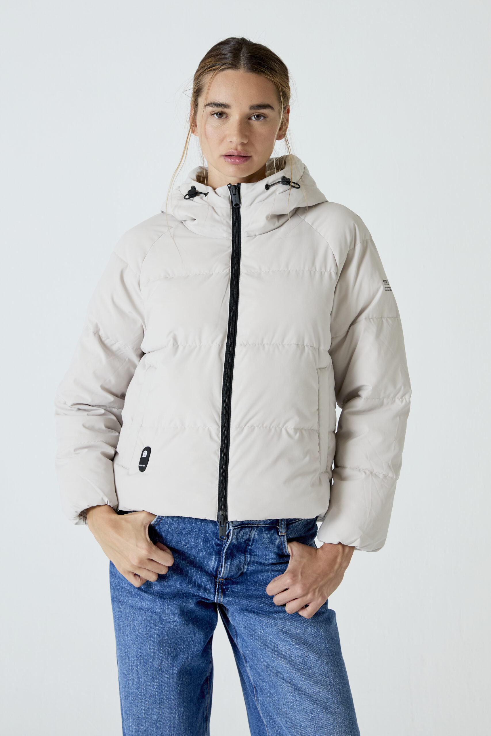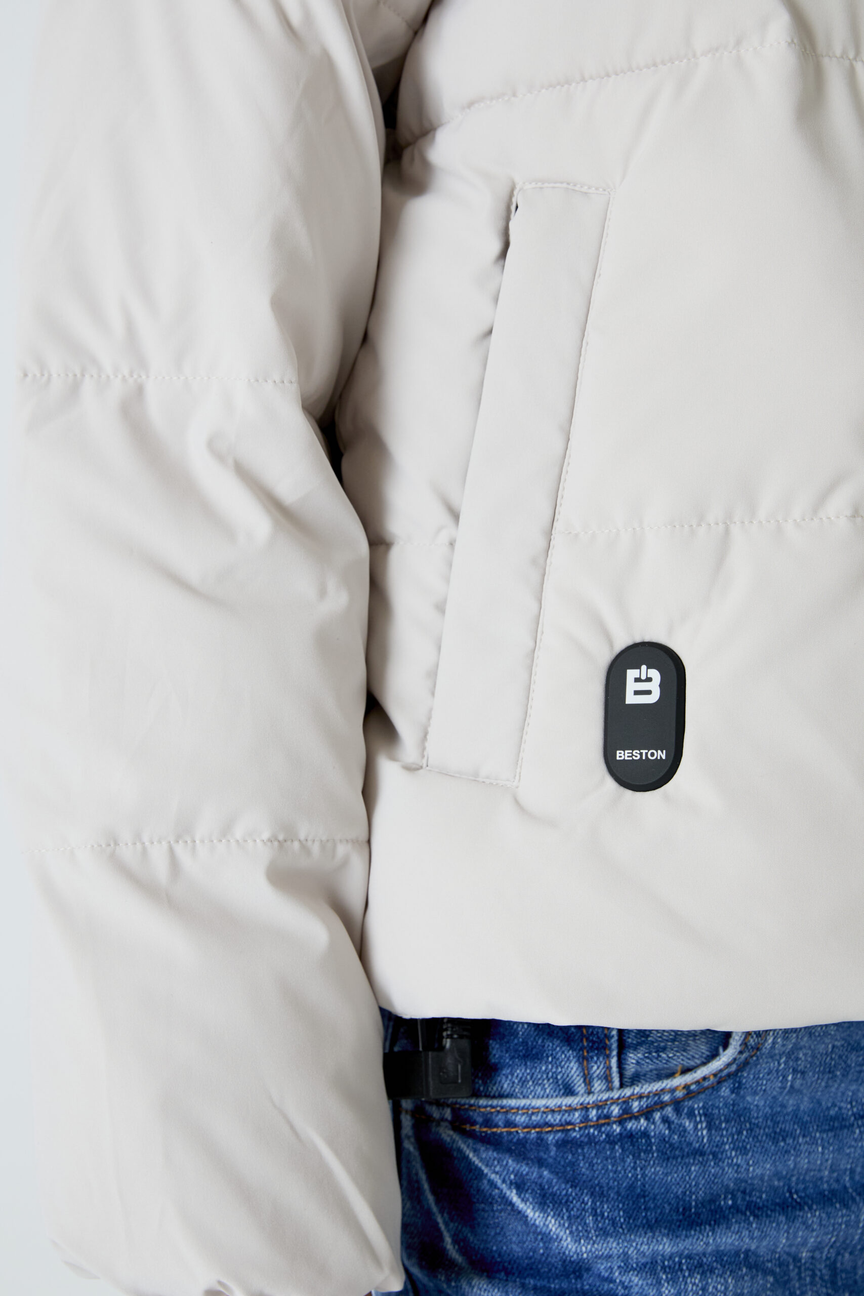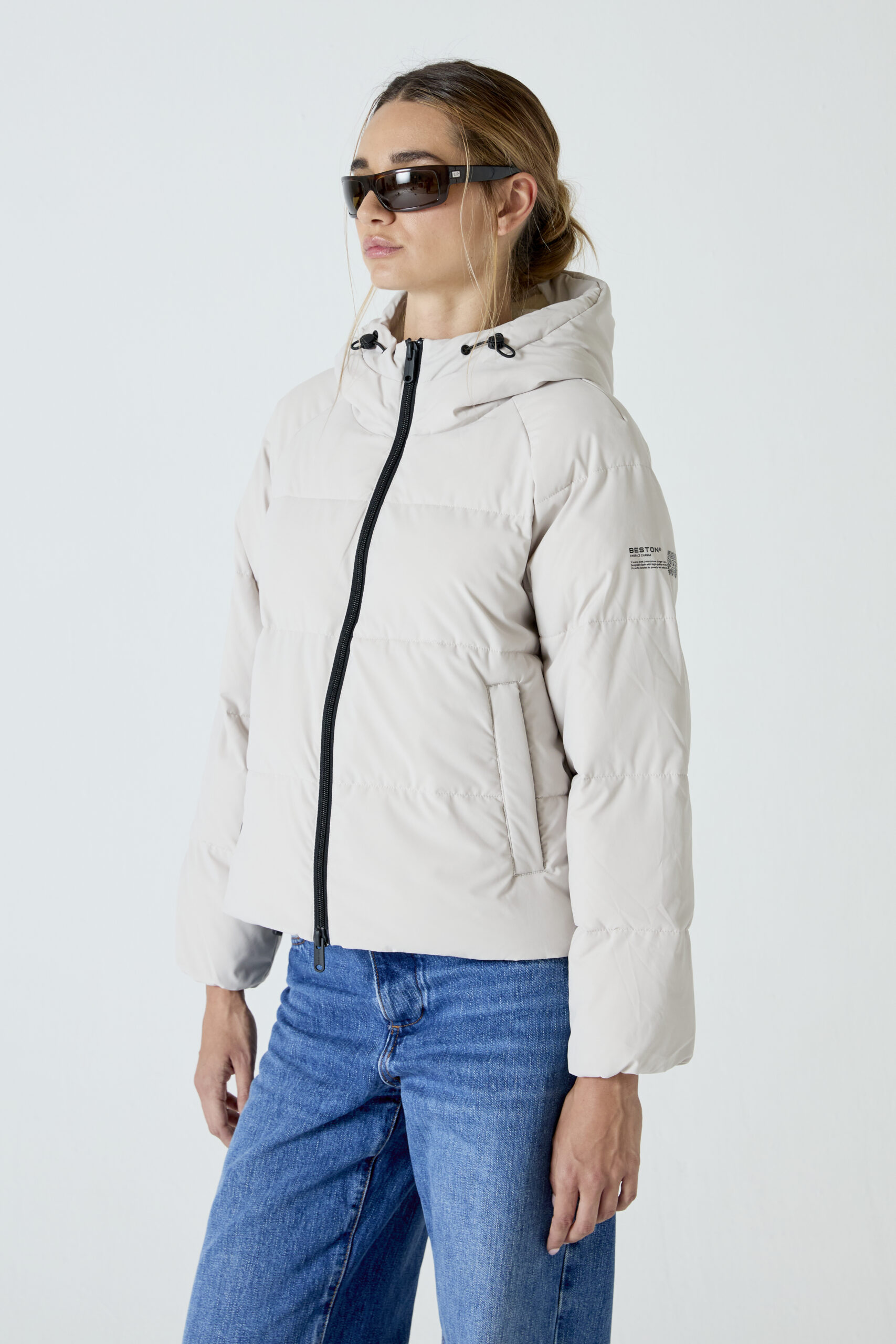 Heat-In Technology 2.0 coat: 9 adjustable temperature options, 5 optimized heating zones, with mobile charging functionality and up to 6 and a half hours of duration (battery included in delivery). Integrated personalized QR: Includes your professional, social and emergency profile. Made with certified recycled materials.