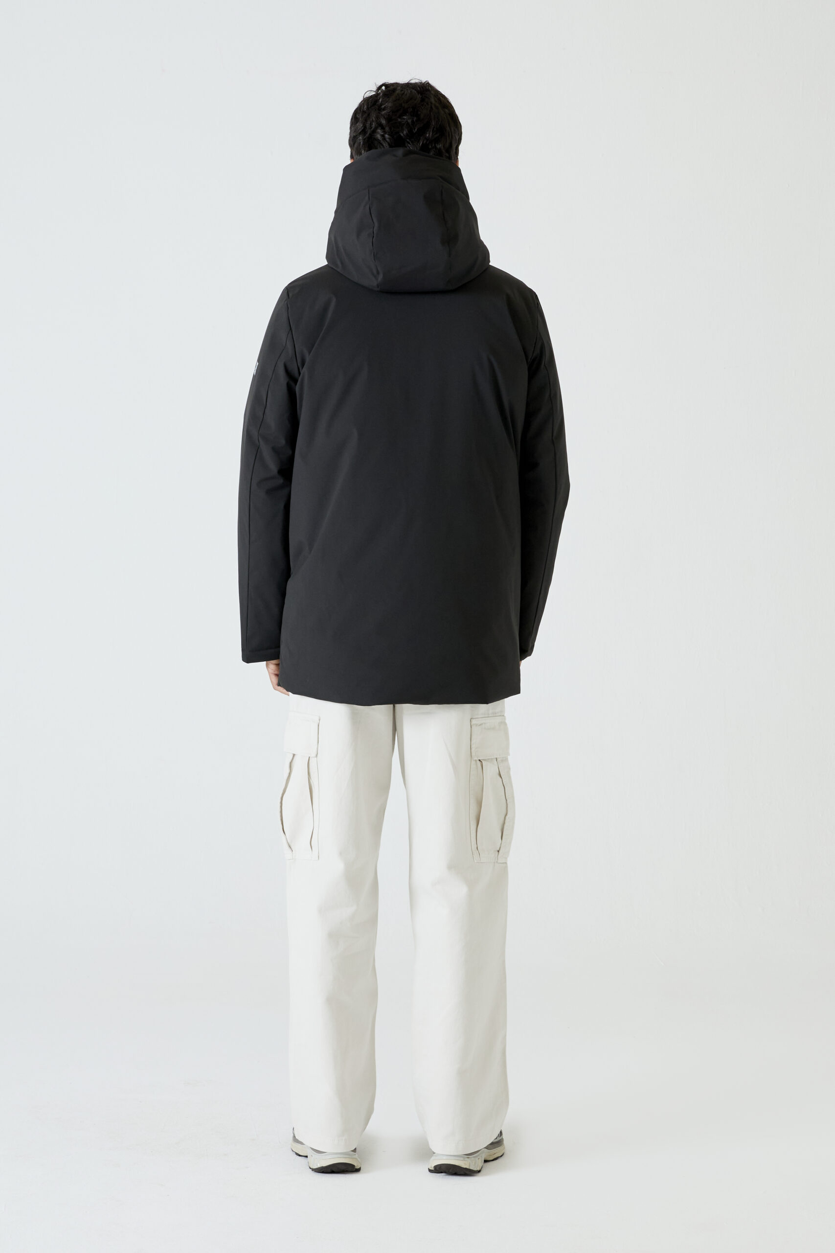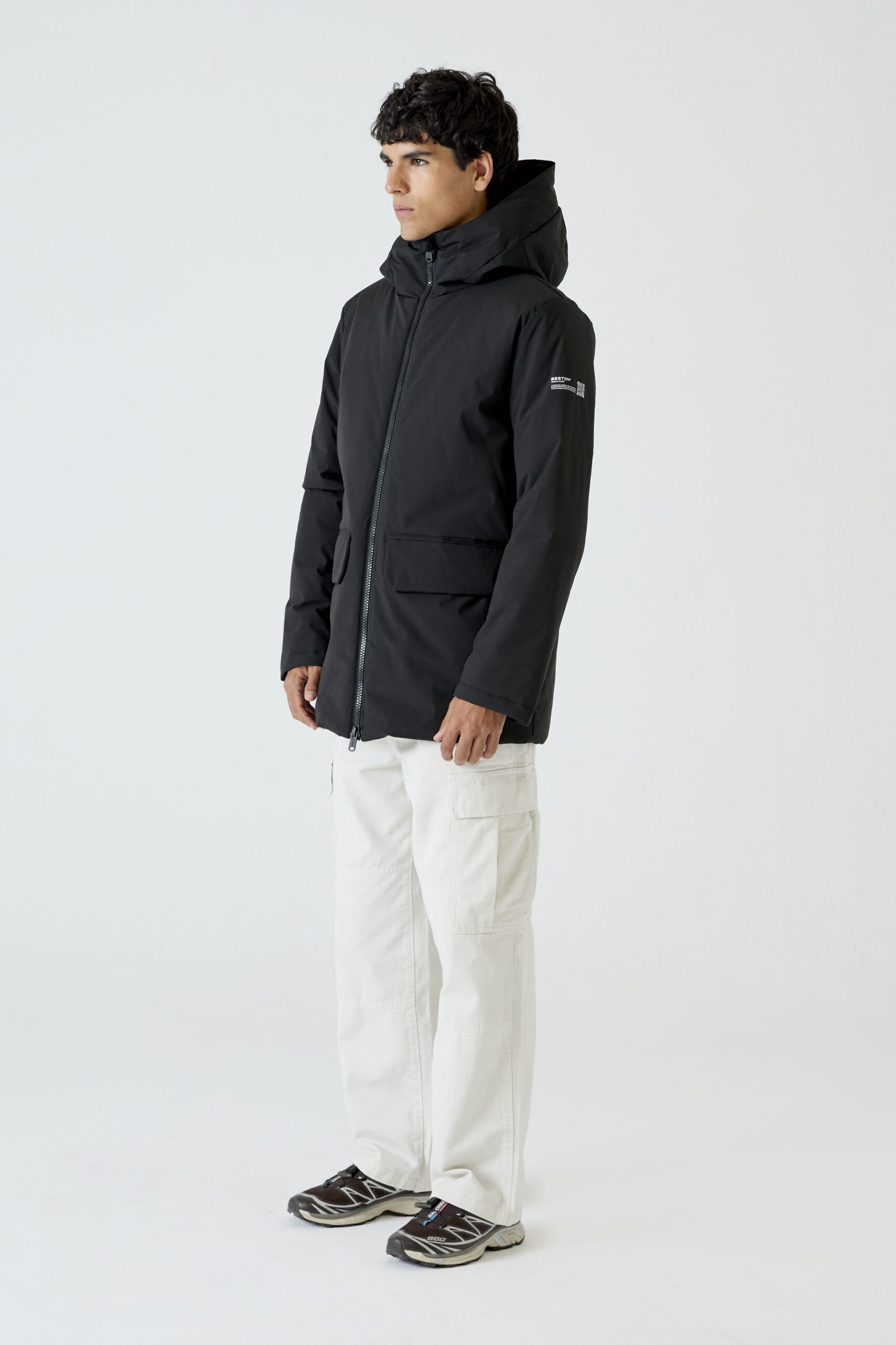 Heat-In Technology 2.0 coat: 9 adjustable temperature options, 5 optimized heating zones, with mobile charging functionality and up to 6 and a half hours of duration (battery included in delivery). Integrated personalized QR: Includes your professional, social and emergency profile. Made with certified recycled materials.