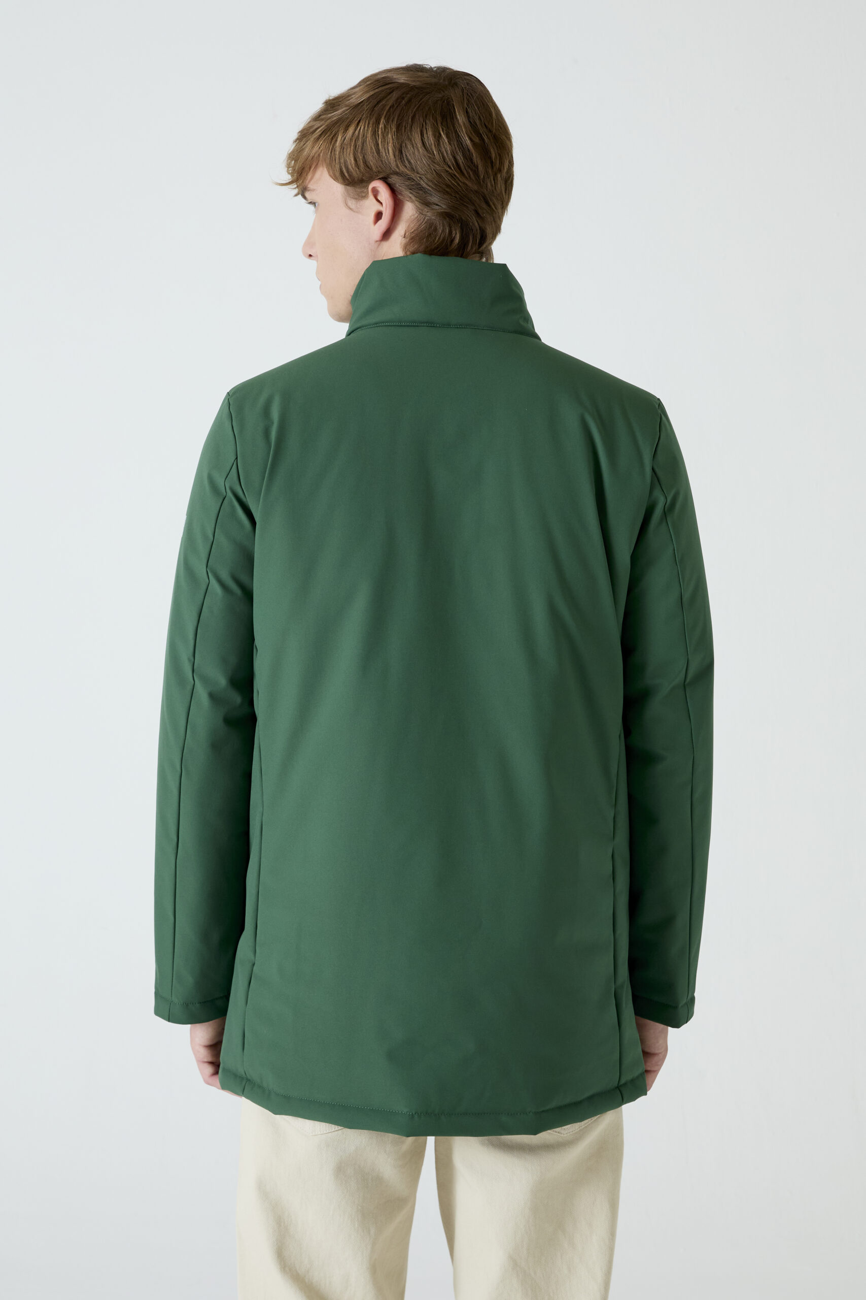 Heat-In Technology 2.0 coat: 9 adjustable temperature options, 5 optimized heating zones, with mobile charging functionality and up to 6 and a half hours of duration (battery included in delivery). Integrated personalized QR: Includes your professional, social and emergency profile. Made with certified recycled materials.