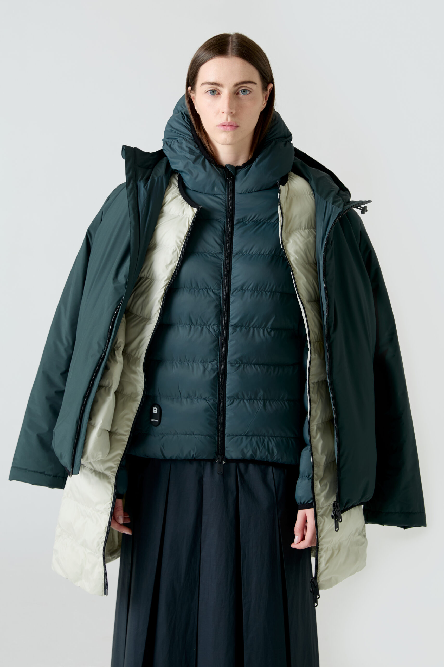Heat-In Technology 2.0 Jacket: 9 adjustable temperature options, 5 optimized heating zones, with mobile charging functionality and up to 6 and a half hours of duration (battery included in delivery). Integrated personalized QR: Includes your professional, social and emergency profile. Made with certified recycled materials.