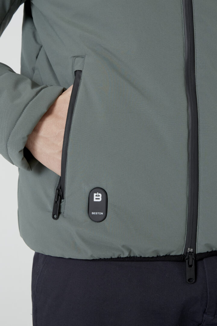 Heat-In Technology 2.0 Jacket: 9 adjustable temperature options, 5 optimized heating zones, with mobile charging functionality and up to 6 and a half hours of duration (battery included in delivery). Integrated personalized QR: Includes your professional, social and emergency profile. Made with certified recycled materials.