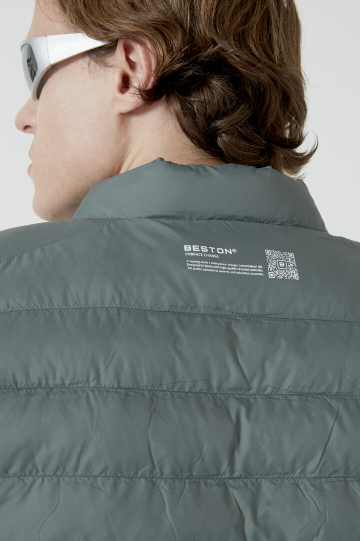 Heat-In Technology 2.0 Vest: 9 adjustable temperature options, 5 optimized heating zones, with mobile charging functionality and up to 6 and a half hours of duration (battery included in delivery). Integrated personalized QR: Includes your professional, social and emergency profile. Made with certified recycled materials.