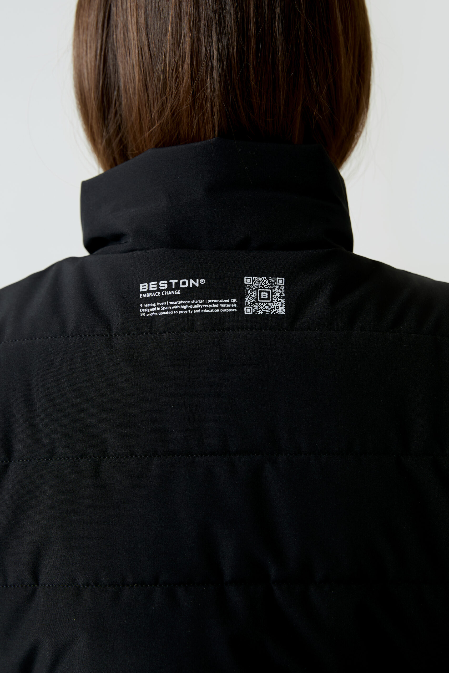 Heat-In Technology 2.0 Vest: 9 adjustable temperature options, 5 optimized heating zones, with mobile charging functionality and up to 6 and a half hours of duration (battery included in delivery). Integrated personalized QR: Includes your professional, social and emergency profile. Made with certified recycled materials.