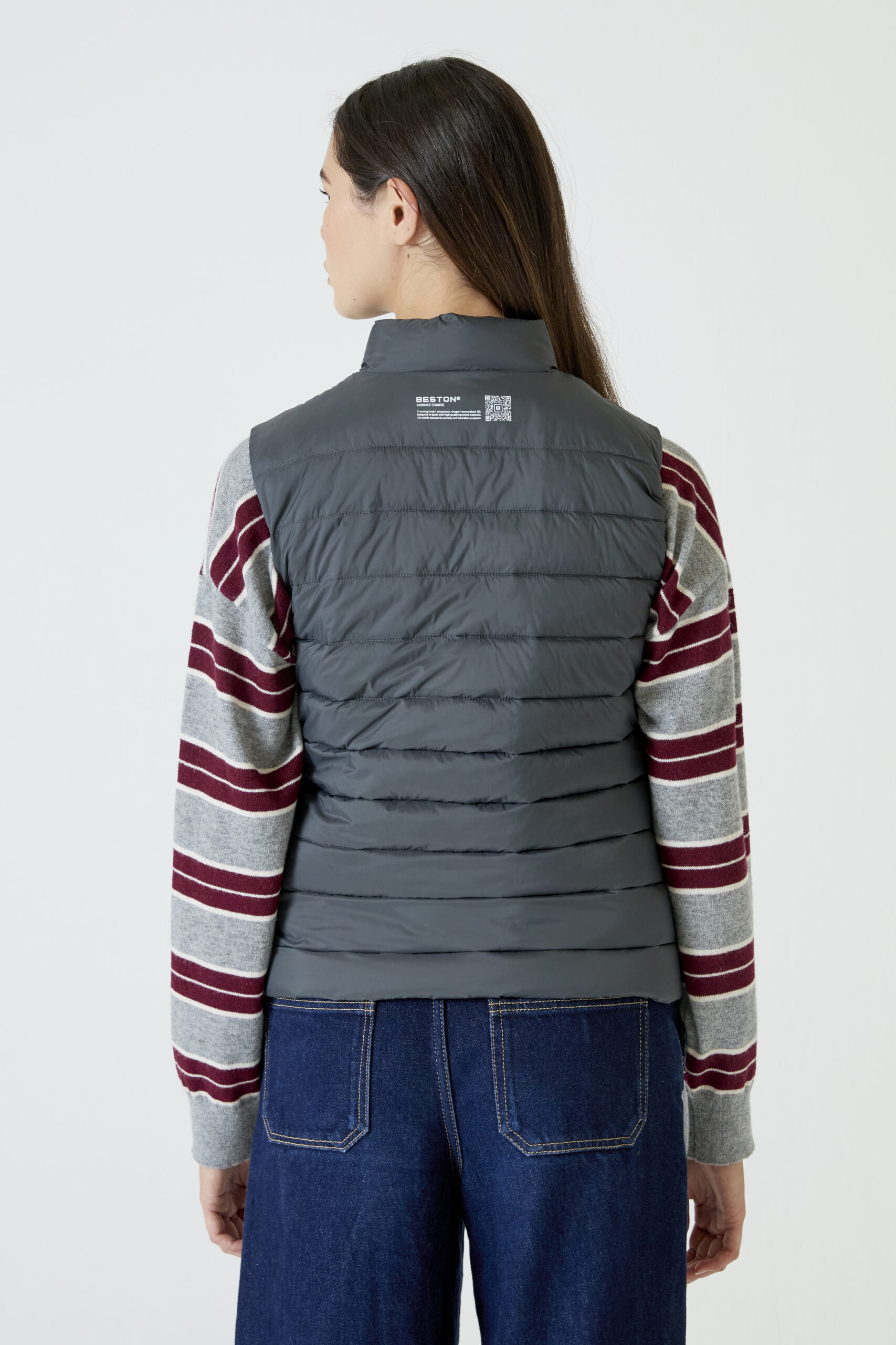 Heat-In Technology 2.0 Vest: 9 adjustable temperature options, 5 optimized heating zones, with mobile charging functionality and up to 6 and a half hours of duration (battery included in delivery). Integrated personalized QR: Includes your professional, social and emergency profile. Made with certified recycled materials.