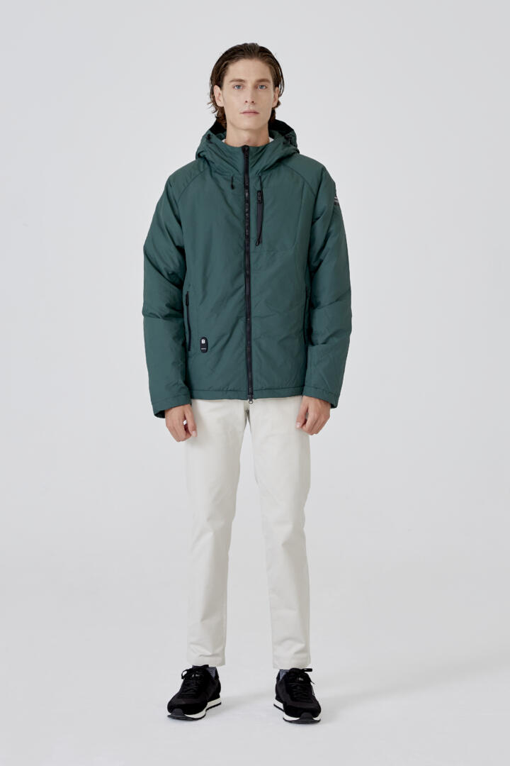 Heat-In Technology 2.0 Jacket: 9 adjustable temperature options, 5 optimized heating zones, with mobile charging functionality and up to 6 and a half hours of duration (battery included in delivery). Integrated personalized QR: Includes your professional, social and emergency profile. Made with certified recycled materials.