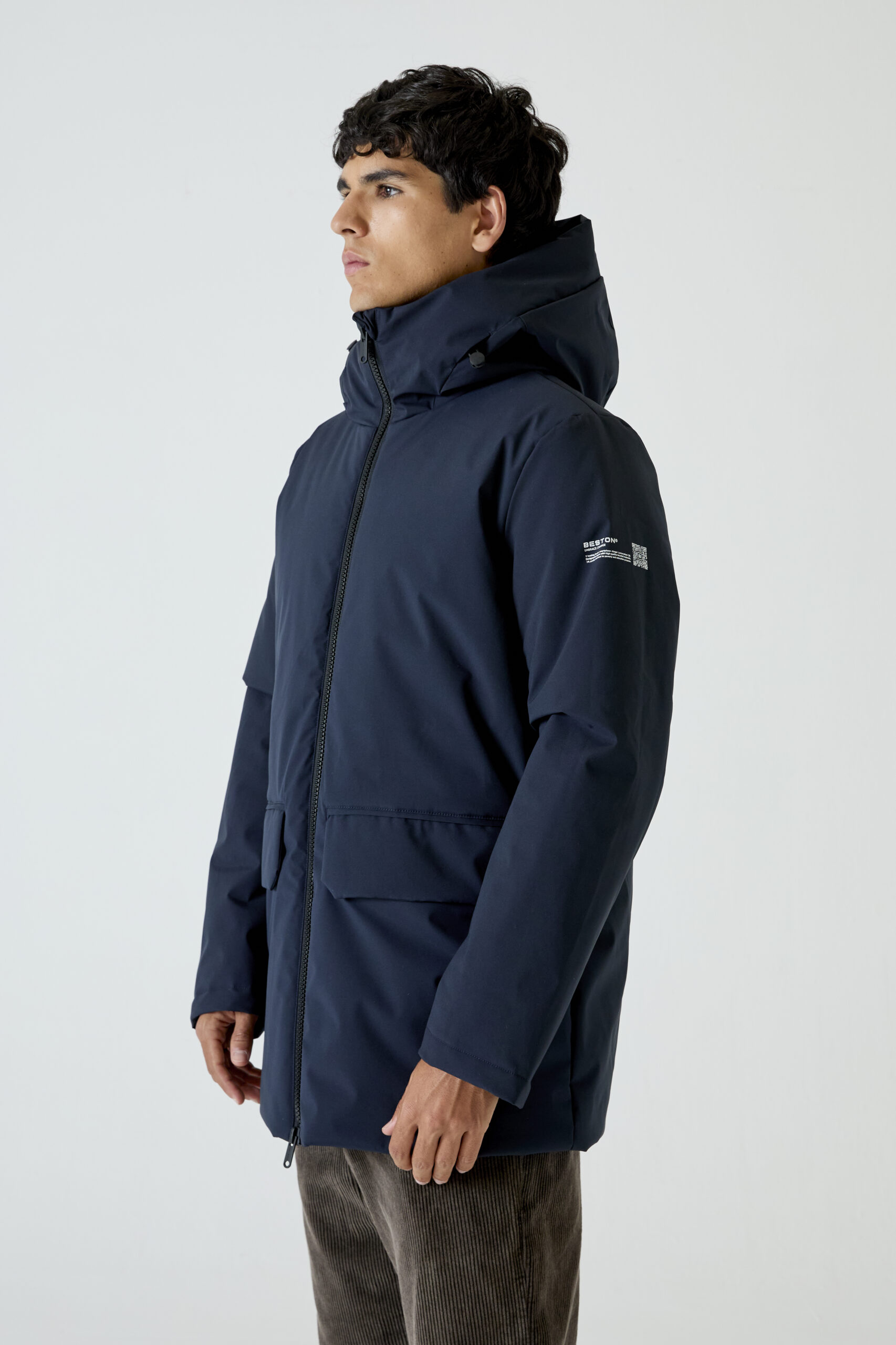 Abrigo Heat-In Technology 2.0: 9 opciones de temperatura ajustables, 5 zonas de calefacción optimizadas, con funcionalidad de carga móvil y hasta 6 horas y media de duración (bateria incluida en el envio). QR personalizado integrado: Incluye tu perfil profesional, social y de emergencia. Hecho con materiales reciclados certificados.