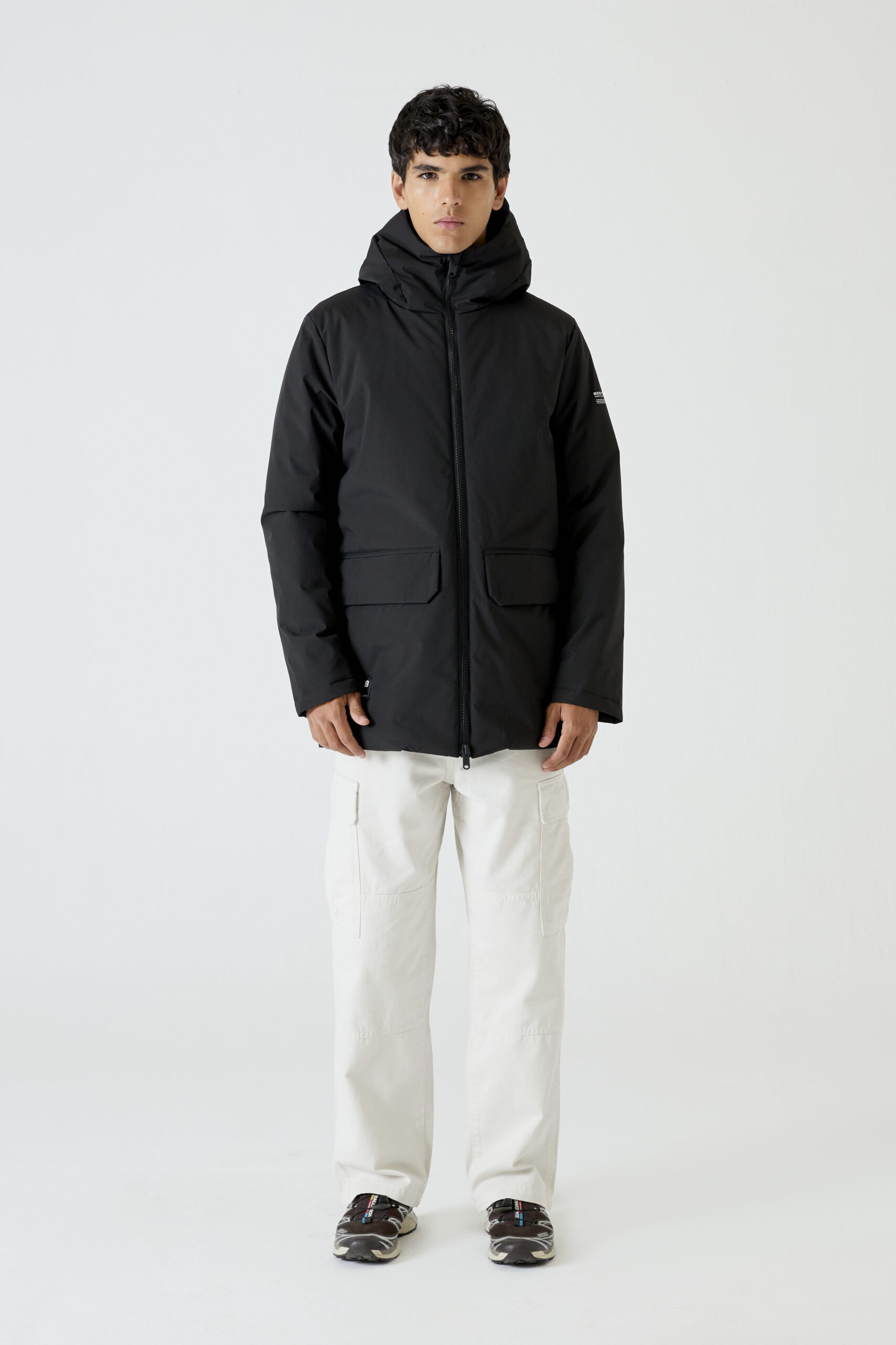 Abrigo Heat-In Technology 2.0: 9 opciones de temperatura ajustables, 5 zonas de calefacción optimizadas, con funcionalidad de carga móvil y hasta 6 horas y media de duración (bateria incluida en el envio). QR personalizado integrado: Incluye tu perfil profesional, social y de emergencia. Hecho con materiales reciclados certificados.