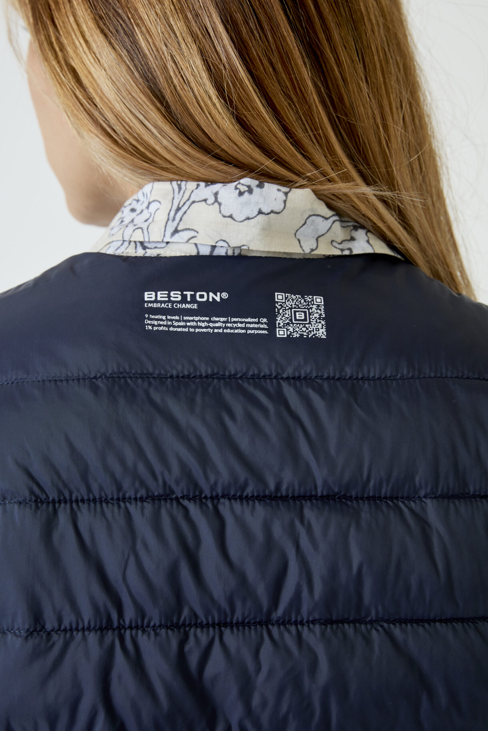 Chaleco Heat-In Technology 2.0: 9 opciones de temperatura ajustables, 5 zonas de calefacción optimizadas, con funcionalidad de carga móvil y hasta 6 horas y media de duración (bateria incluida en el envio). QR personalizado integrado: Incluye tu perfil profesional, social y de emergencia. Hecho con materiales reciclados certificados.