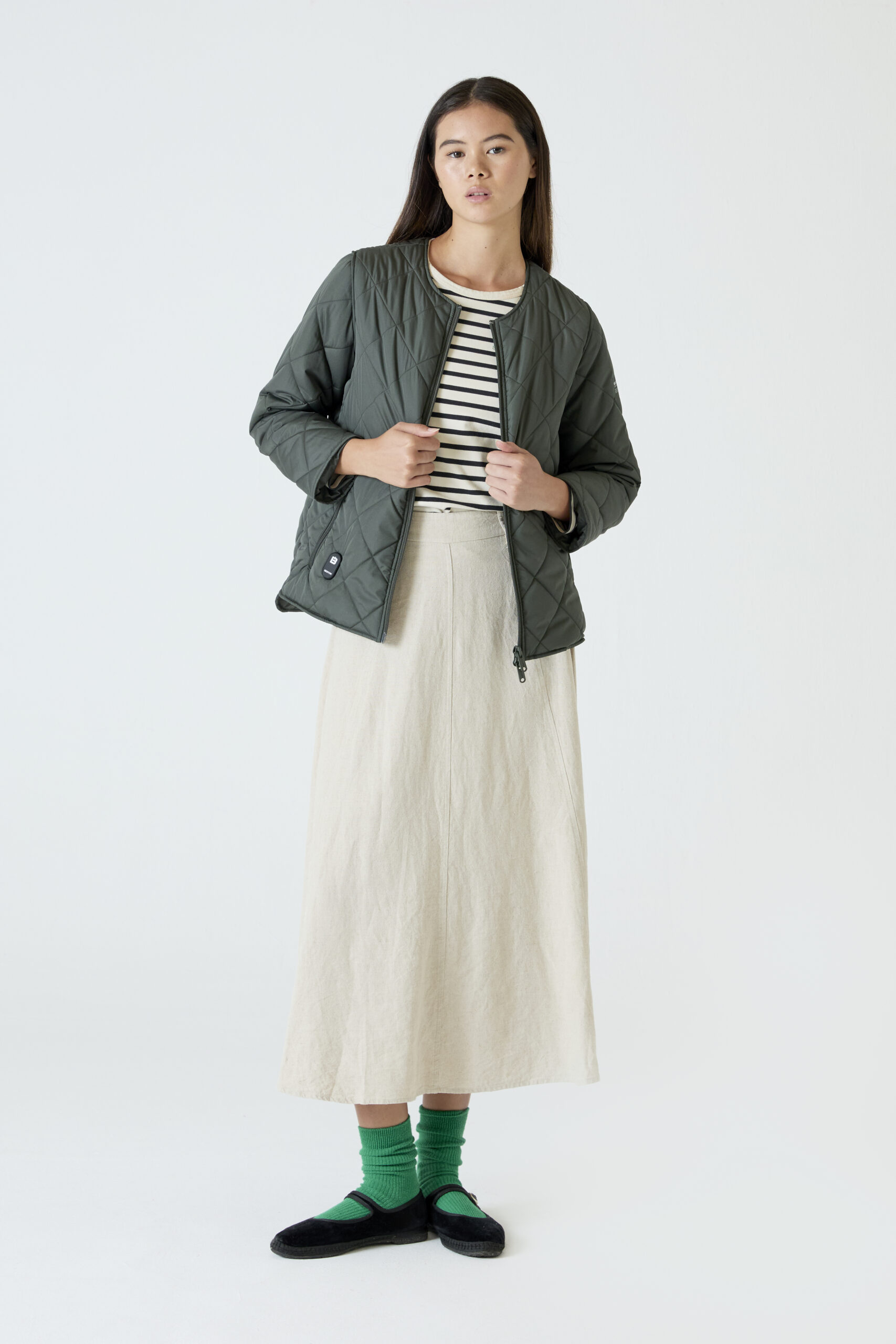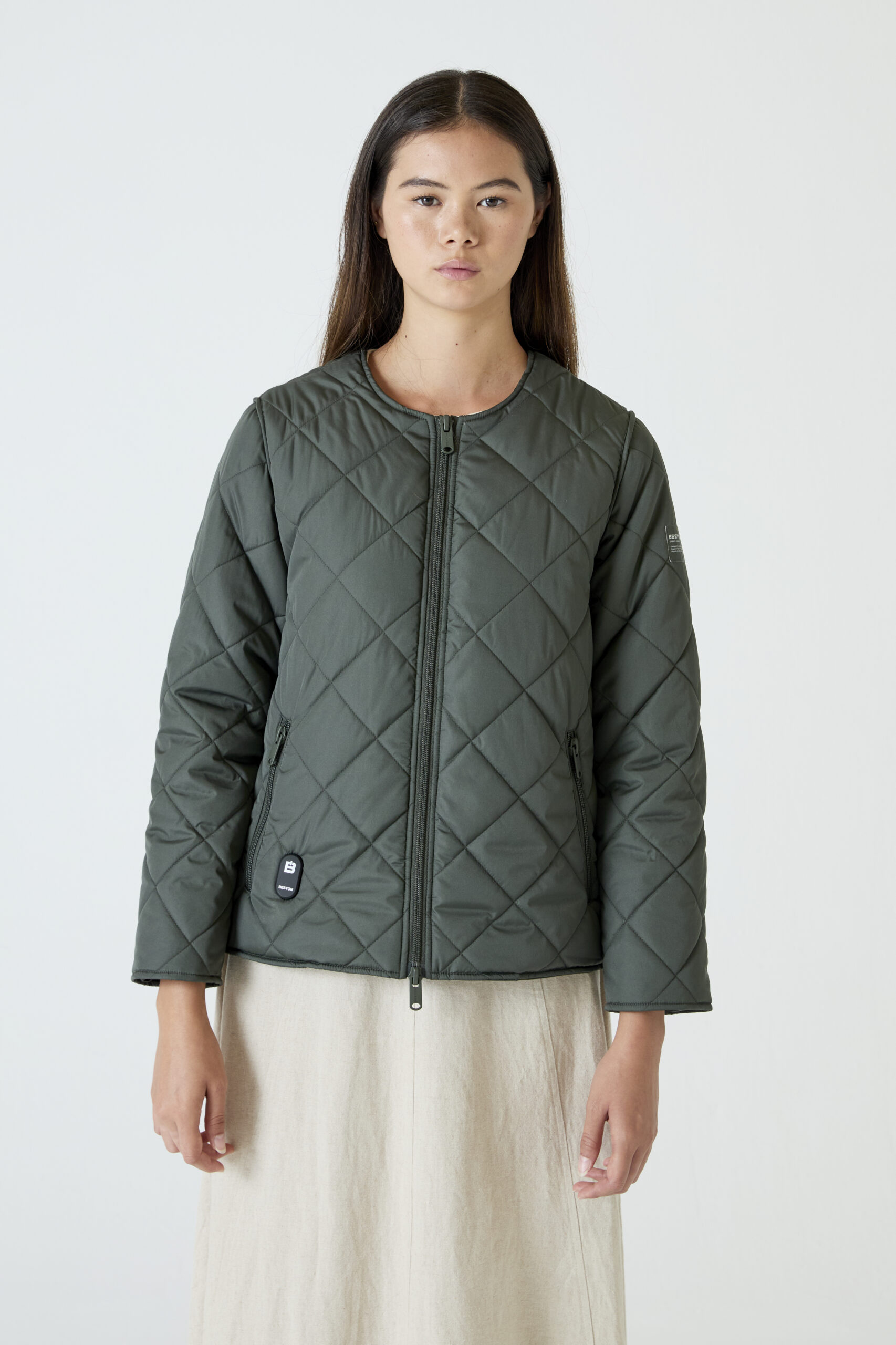 Chaqueta Heat-In Technology 2.0: 9 opciones de temperatura ajustables, 5 zonas de calefacción optimizadas, con funcionalidad de carga móvil y hasta 6 horas y media de duración (bateria incluida en el envio). QR personalizado integrado: Incluye tu perfil profesional, social y de emergencia. Hecho con materiales reciclados certificados.