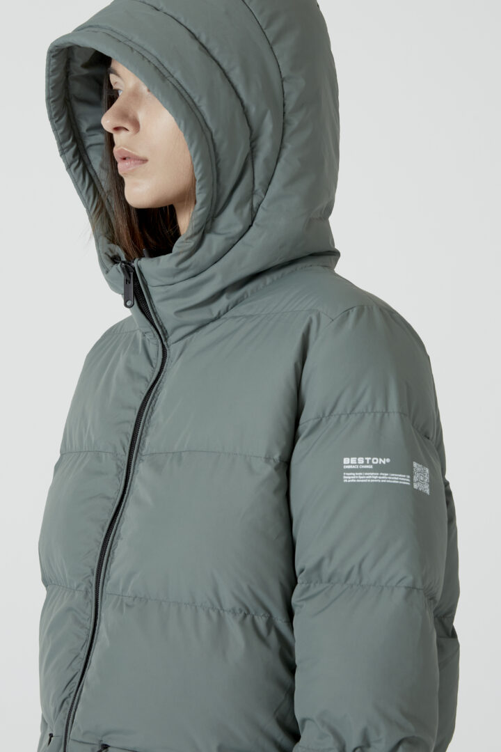 Heat-In Technology 2.0 coat: 9 adjustable temperature options, 5 optimized heating zones, with mobile charging functionality and up to 6 and a half hours of duration (battery included in delivery). Integrated personalized QR: Includes your professional, social and emergency profile. Made with certified recycled materials.