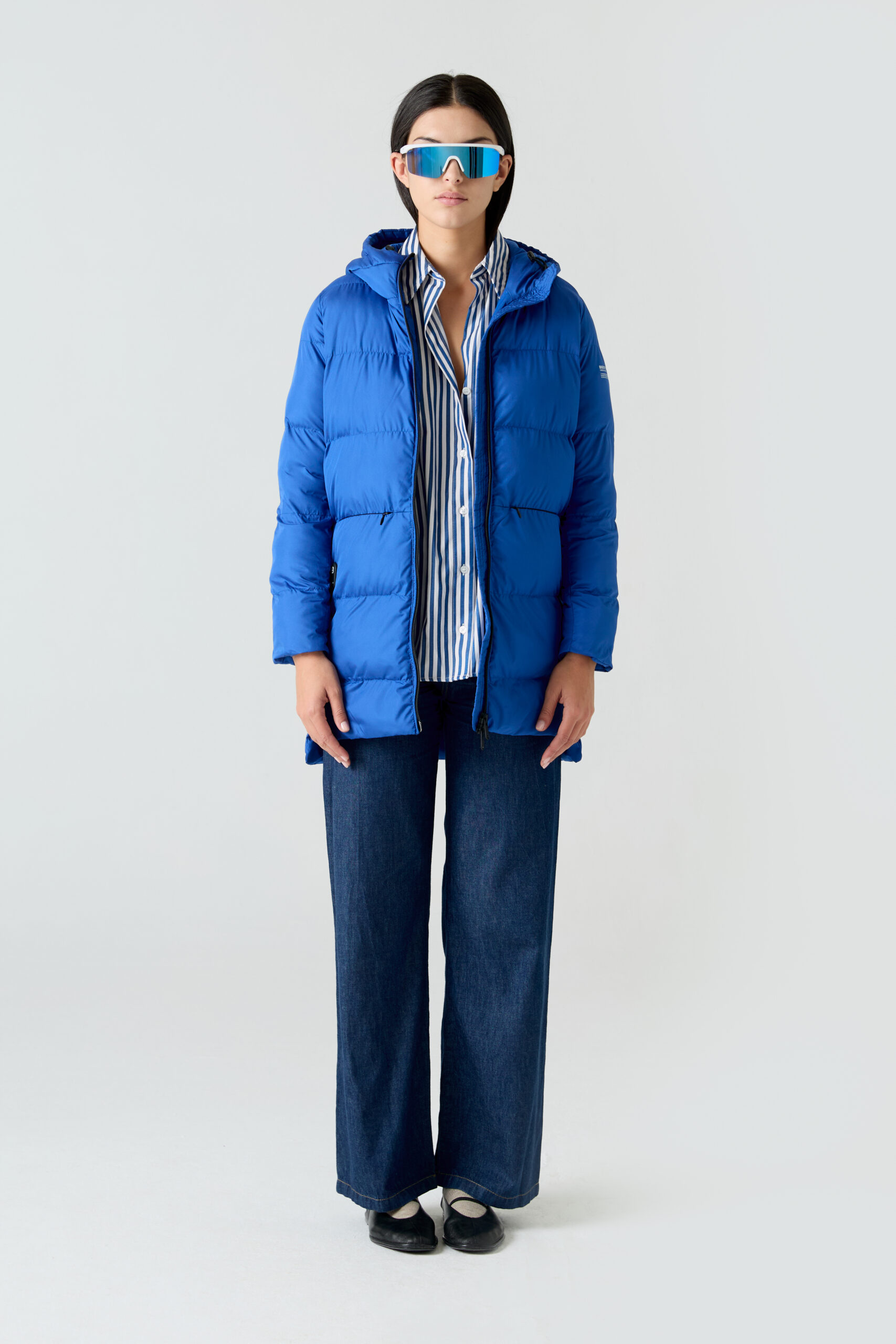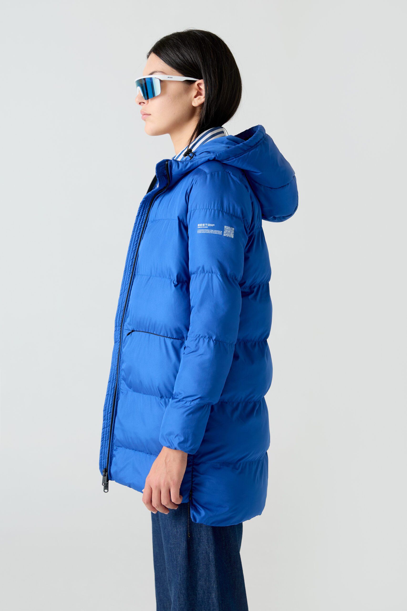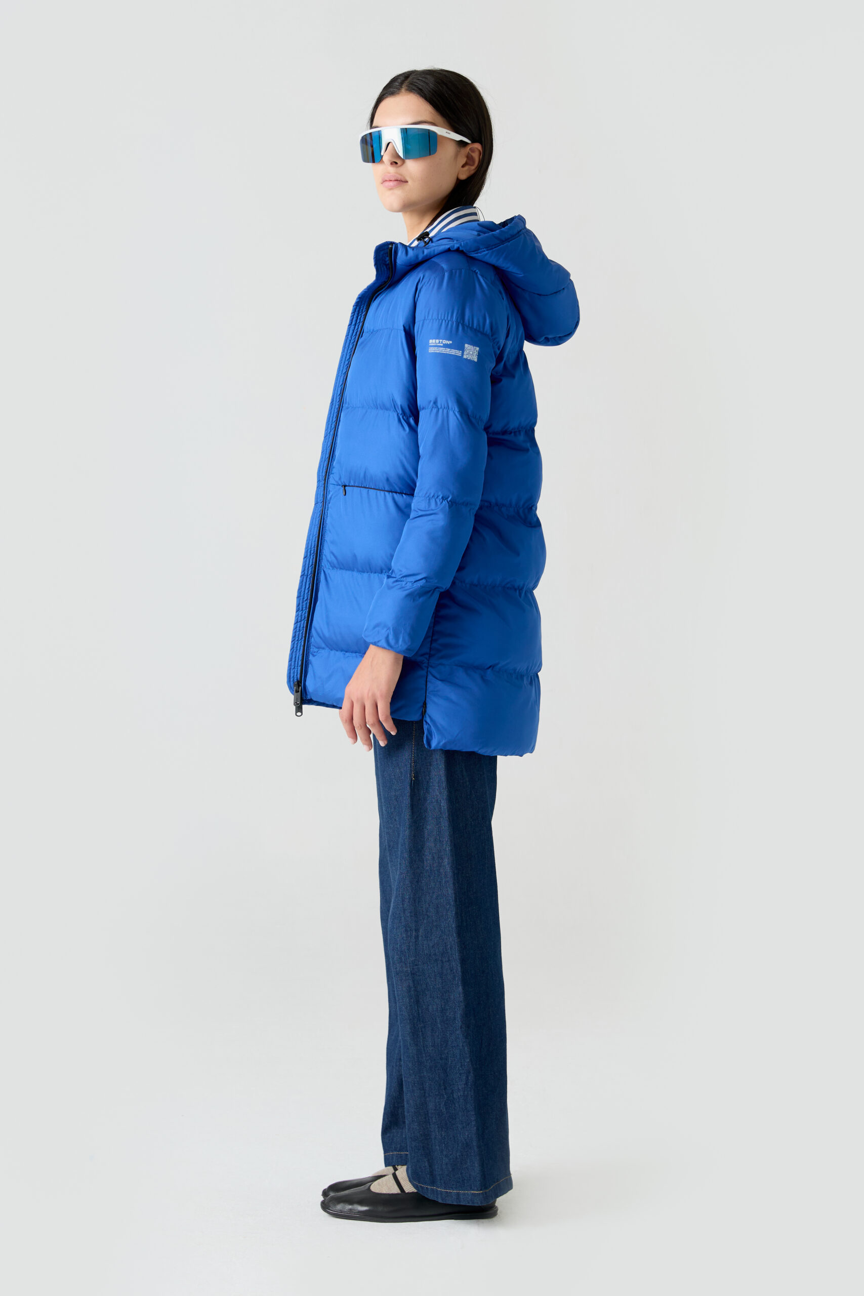 Heat-In Technology 2.0 coat: 9 adjustable temperature options, 5 optimized heating zones, with mobile charging functionality and up to 6 and a half hours of duration (battery included in delivery). Integrated personalized QR: Includes your professional, social and emergency profile. Made with certified recycled materials.
