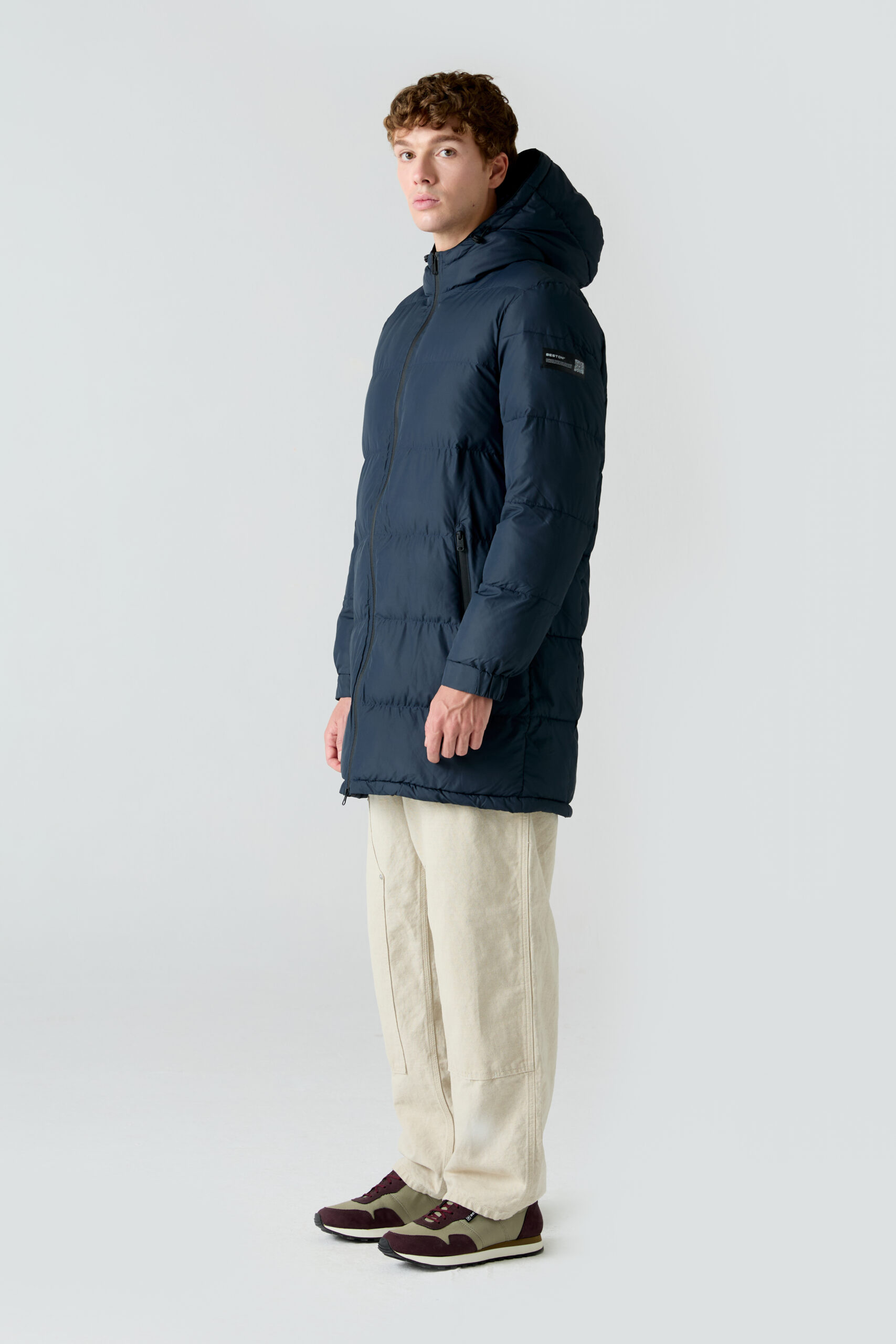 Heat-In Technology 2.0 coat: 9 adjustable temperature options, 5 optimized heating zones, with mobile charging functionality and up to 6 and a half hours of duration (battery included in delivery). Integrated personalized QR: Includes your professional, social and emergency profile. Made with certified recycled materials.