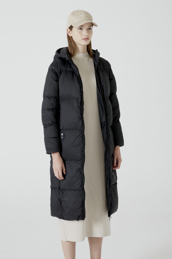 Heat-In Technology 2.0 coat: 9 adjustable temperature options, 5 optimized heating zones, with mobile charging functionality and up to 6 and a half hours of duration (battery included in delivery). Integrated personalized QR: Includes your professional, social and emergency profile. Made with certified recycled materials.