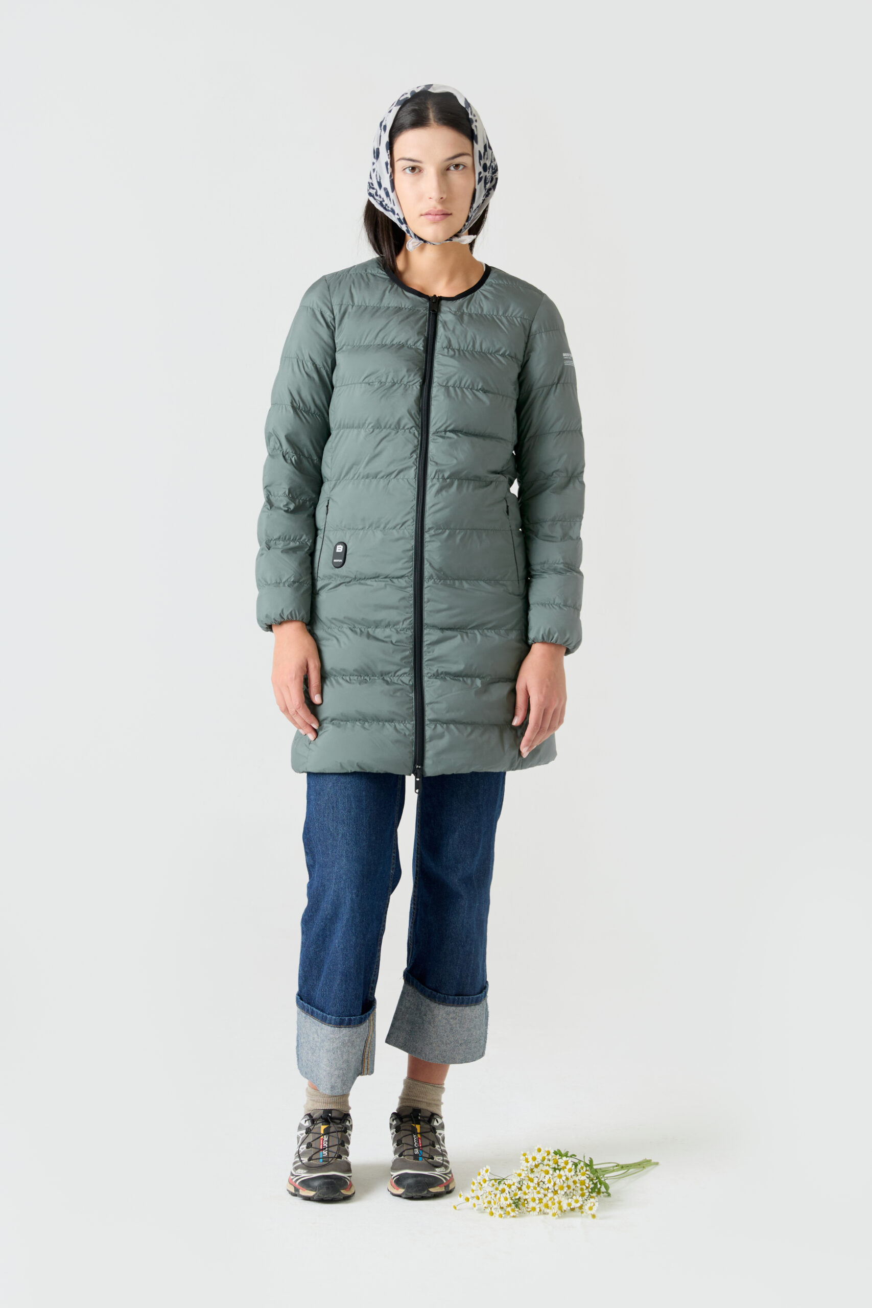Heat-In Technology 2.0 coat: 9 adjustable temperature options, 5 optimized heating zones, with mobile charging functionality and up to 6 and a half hours of duration (battery included in delivery). Integrated personalized QR: Includes your professional, social and emergency profile. Made with certified recycled materials.
