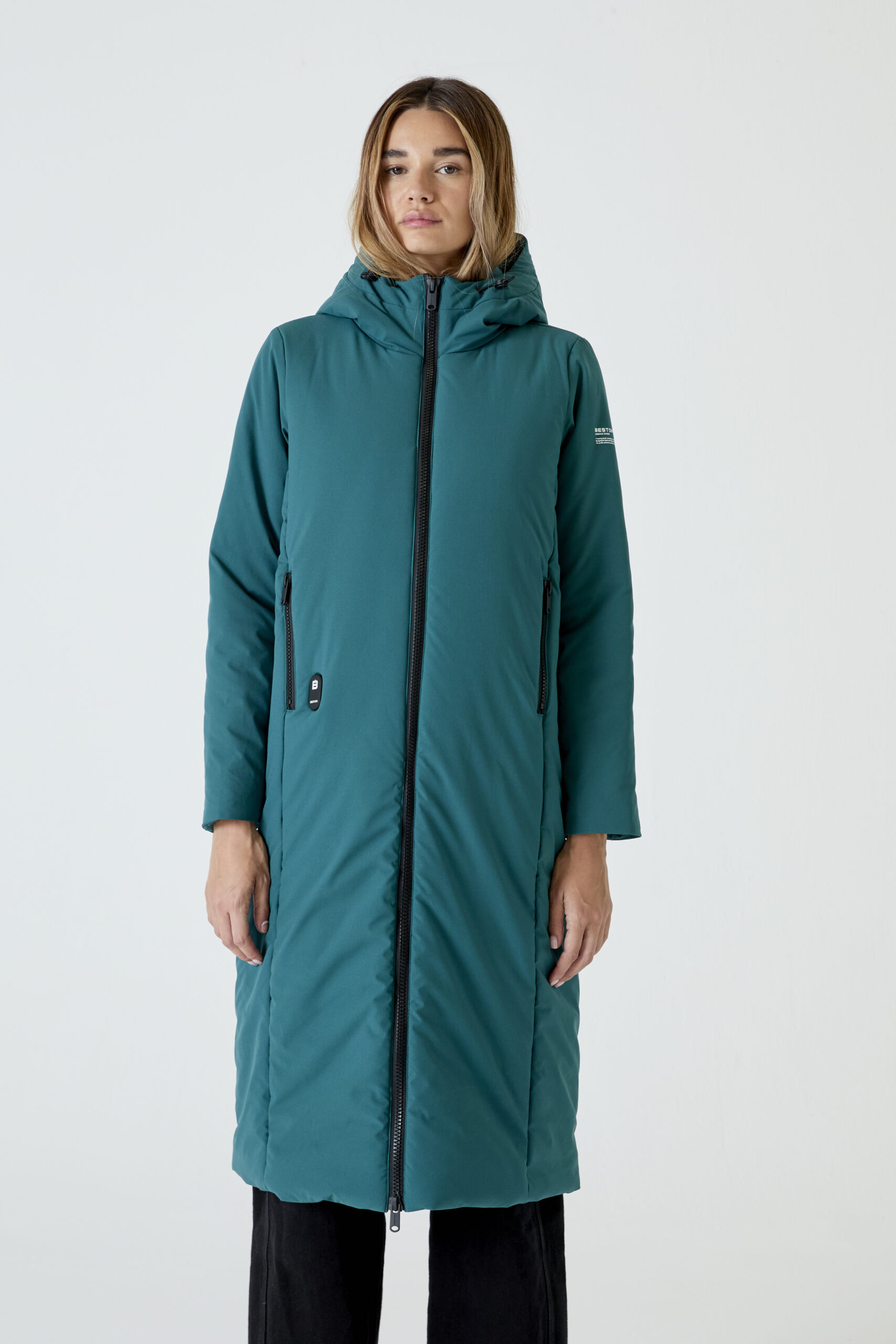 Heat-In Technology 2.0 coat: 9 adjustable temperature options, 5 optimized heating zones, with mobile charging functionality and up to 6 and a half hours of duration (battery included in delivery). Integrated personalized QR: Includes your professional, social and emergency profile. Made with certified recycled materials.