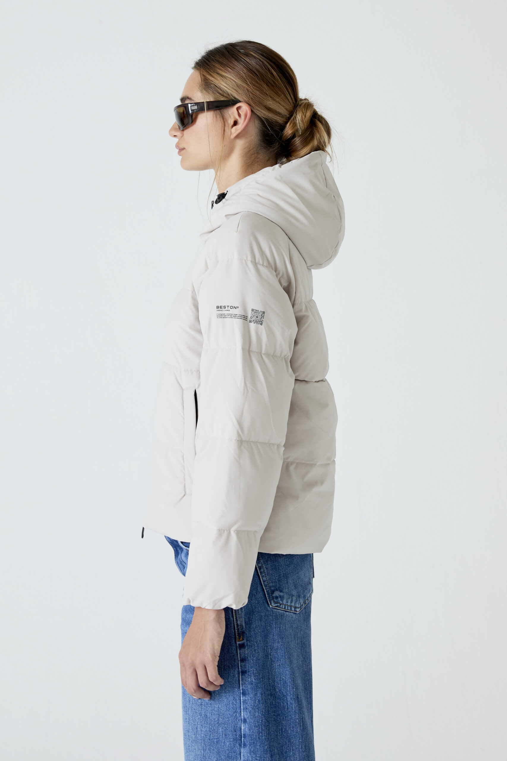 Heat-In Technology 2.0 coat: 9 adjustable temperature options, 5 optimized heating zones, with mobile charging functionality and up to 6 and a half hours of duration (battery included in delivery). Integrated personalized QR: Includes your professional, social and emergency profile. Made with certified recycled materials.