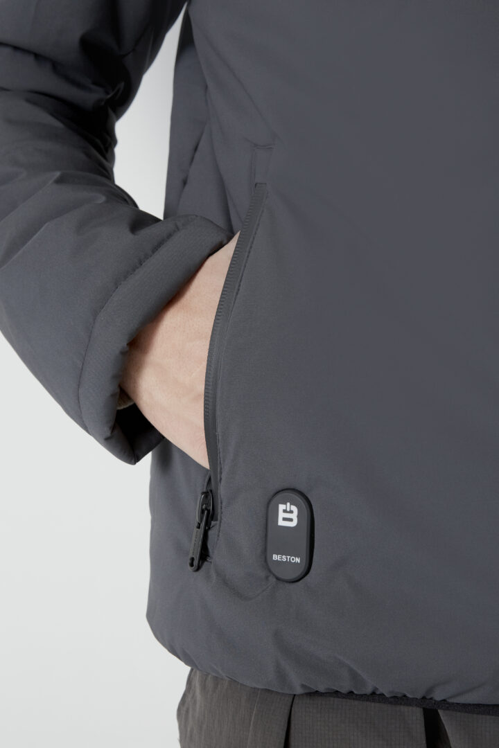 Heat-In Technology 2.0 Jacket: 9 adjustable temperature options, 5 optimized heating zones, with mobile charging functionality and up to 6 and a half hours of duration (battery included in delivery). Integrated personalized QR: Includes your professional, social and emergency profile. Made with certified recycled materials.