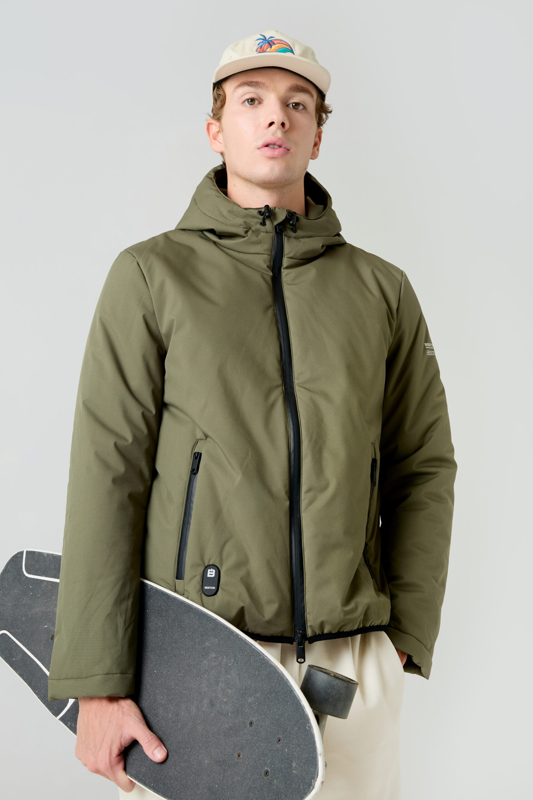 Heat-In Technology 2.0 Jacket: 9 adjustable temperature options, 5 optimized heating zones, with mobile charging functionality and up to 6 and a half hours of duration (battery included in delivery). Integrated personalized QR: Includes your professional, social and emergency profile. Made with certified recycled materials.