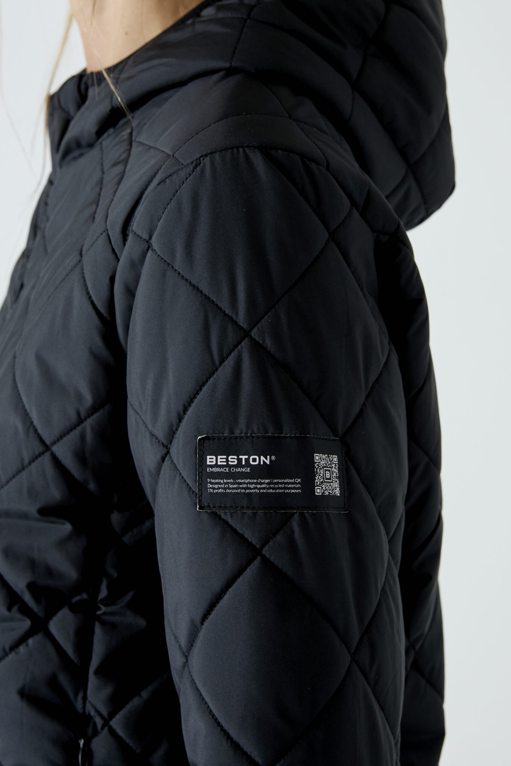 Heat-In Technology 2.0 Jacket: 9 adjustable temperature options, 5 optimized heating zones, with mobile charging functionality and up to 6 and a half hours of duration (battery included in delivery). Integrated personalized QR: Includes your professional, social and emergency profile. Made with certified recycled materials.