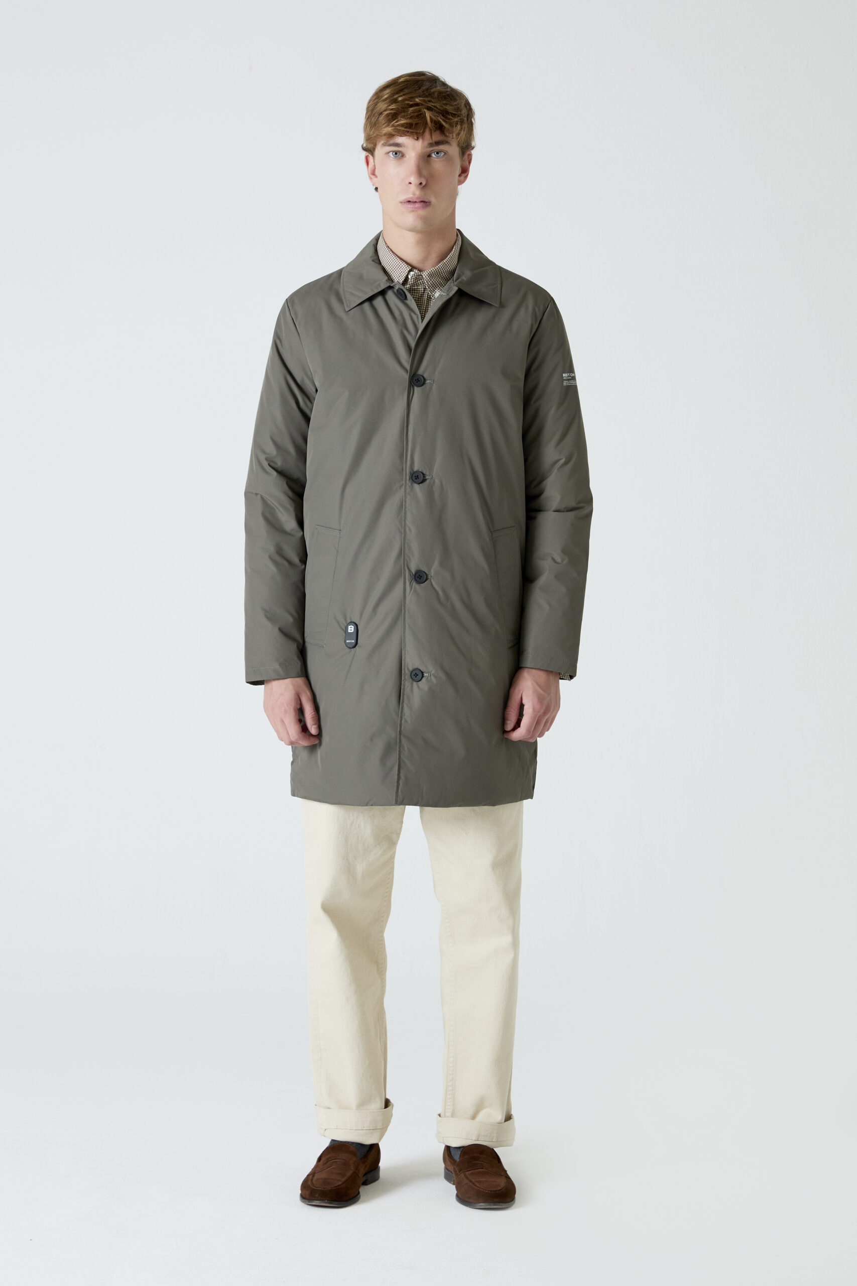 Heat-In Technology 2.0 coat: 9 adjustable temperature options, 5 optimized heating zones, with mobile charging functionality and up to 6 and a half hours of duration (battery included in delivery). Integrated personalized QR: Includes your professional, social and emergency profile. Made with certified recycled materials.