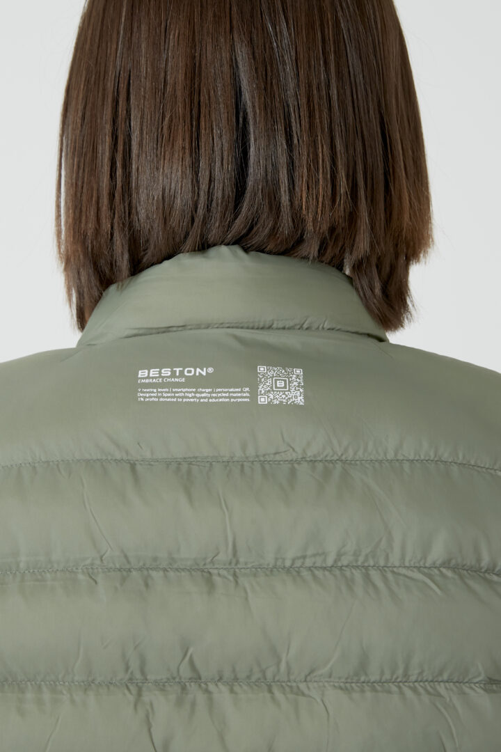 Heat-In Technology 2.0 Vest: 9 adjustable temperature options, 5 optimized heating zones, with mobile charging functionality and up to 6 and a half hours of duration (battery included in delivery). Integrated personalized QR: Includes your professional, social and emergency profile. Made with certified recycled materials.