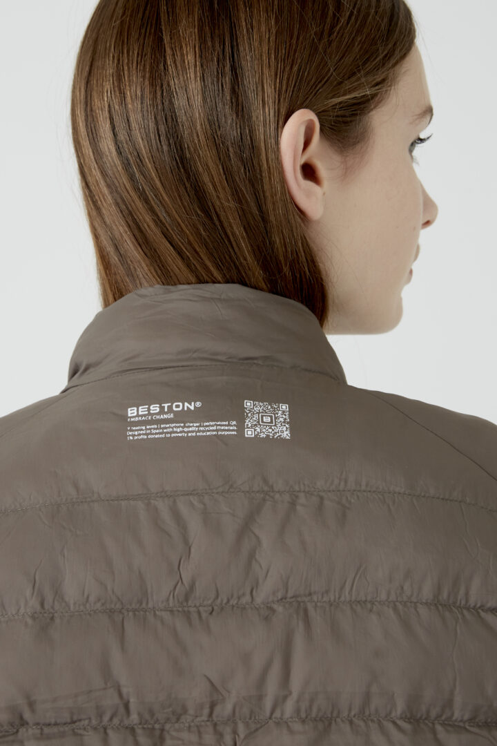 Heat-In Technology 2.0 Vest: 9 adjustable temperature options, 5 optimized heating zones, with mobile charging functionality and up to 6 and a half hours of duration (battery included in delivery). Integrated personalized QR: Includes your professional, social and emergency profile. Made with certified recycled materials.