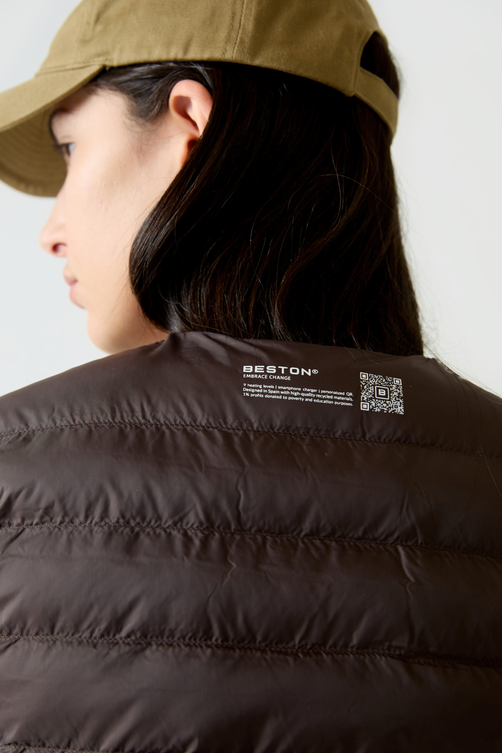 Heat-In Technology 2.0 Vest: 9 adjustable temperature options, 5 optimized heating zones, with mobile charging functionality and up to 6 and a half hours of duration (battery included in delivery). Integrated personalized QR: Includes your professional, social and emergency profile. Made with certified recycled materials.