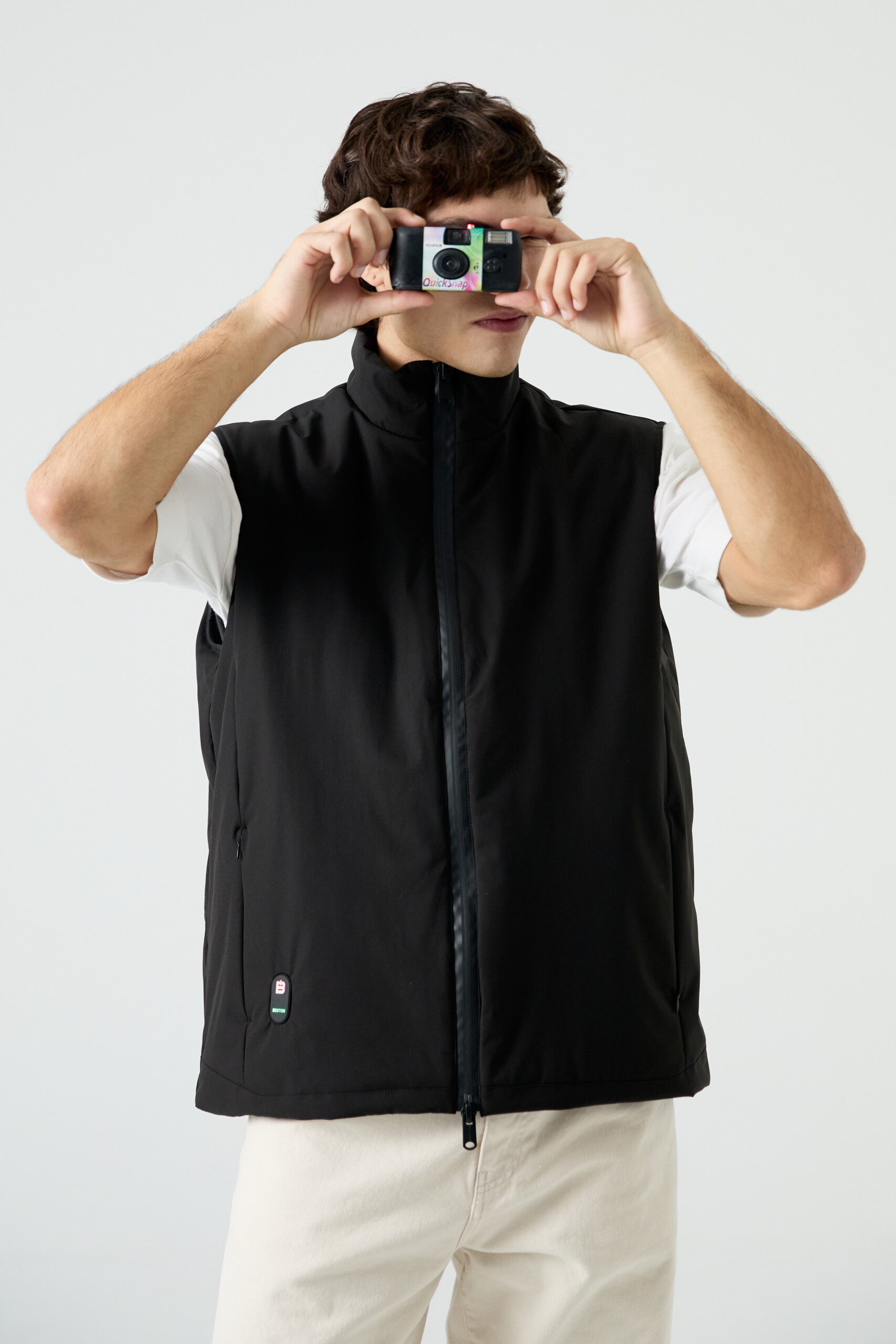 Heat-In Technology 2.0 Vest: 9 adjustable temperature options, 5 optimized heating zones, with mobile charging functionality and up to 6 and a half hours of duration (battery included in delivery). Integrated personalized QR: Includes your professional, social and emergency profile. Made with certified recycled materials.