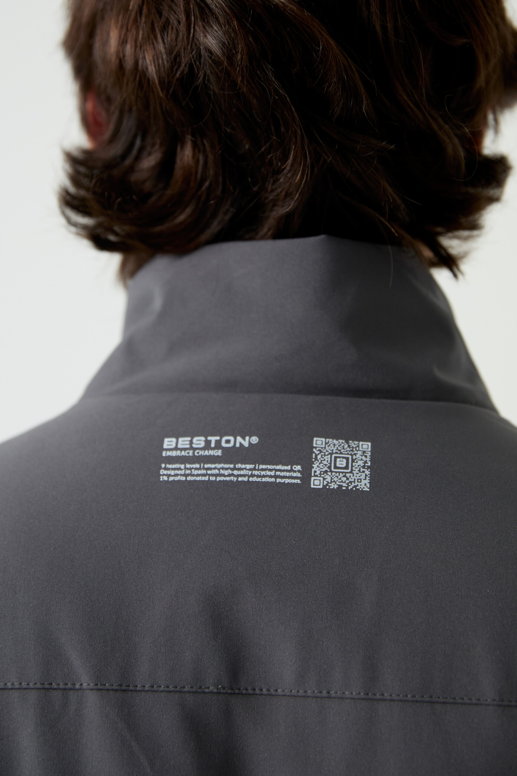 Heat-In Technology 2.0 Vest: 9 adjustable temperature options, 5 optimized heating zones, with mobile charging functionality and up to 6 and a half hours of duration (battery included in delivery). Integrated personalized QR: Includes your professional, social and emergency profile. Made with certified recycled materials.