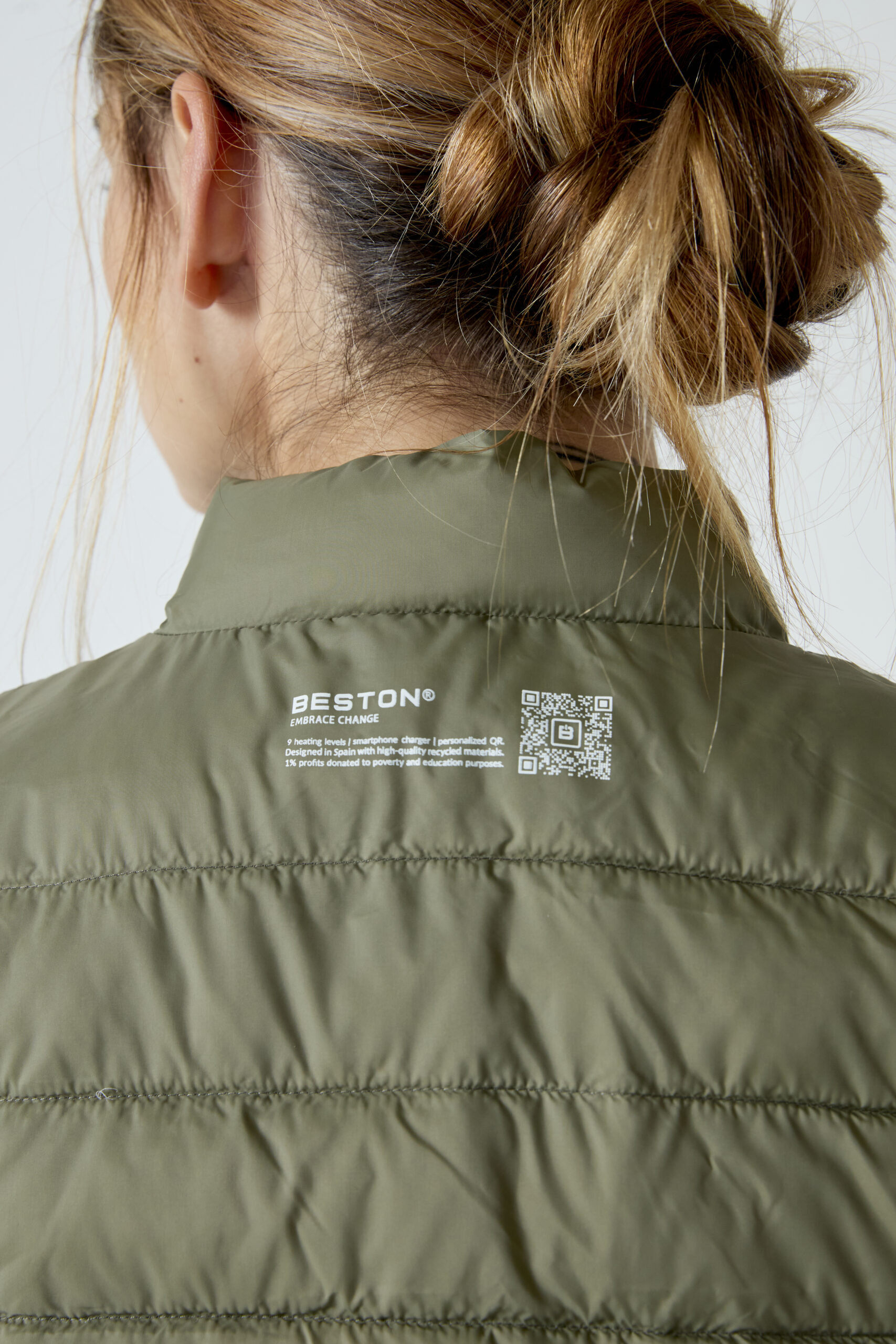Heat-In Technology 2.0 Vest: 9 adjustable temperature options, 5 optimized heating zones, with mobile charging functionality and up to 6 and a half hours of duration (battery included in delivery). Integrated personalized QR: Includes your professional, social and emergency profile. Made with certified recycled materials.